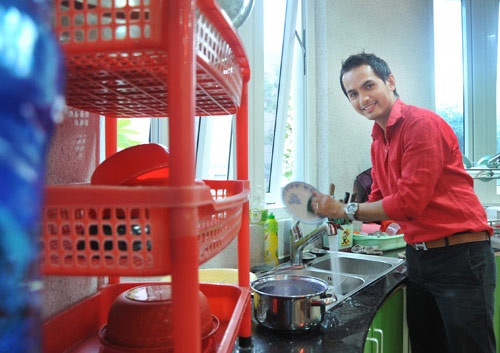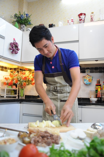 | Nam ca sĩ Đăng Khôi thíchtự tay vào bếp nấu món ngon cho vợ con ăn thay vì cả nhà đi ra ngoài hàng ăn. |