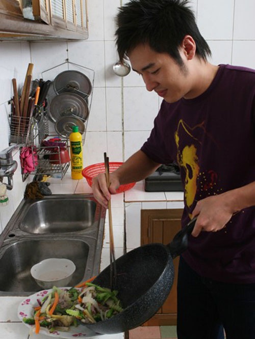 | Không tự nấu ăn ngon được như mẹ nhưng Hoàng Hải lại có thể chế biến được những món đơn giản, dễ nấu và nhanh. |
