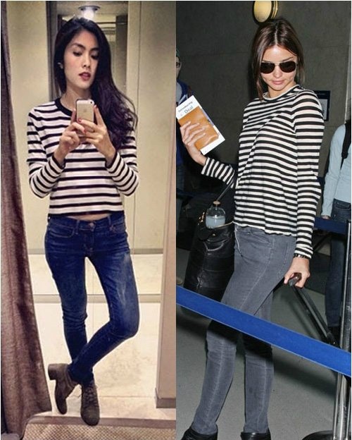 Tuy nhiên, trong một số shoot hình, ta có thể thấy nhiều bộ trang phục của cô có nét tương đồng với siêu mẫu thế giới Miranda Kerr. Có lẽ Miranda Kerr vốn là một fashion icon cực kỳ nổi tiếng đã trở thành nguồn cảm hứng cho Tăng Thanh Hà học hỏi về phong cách thời trang.