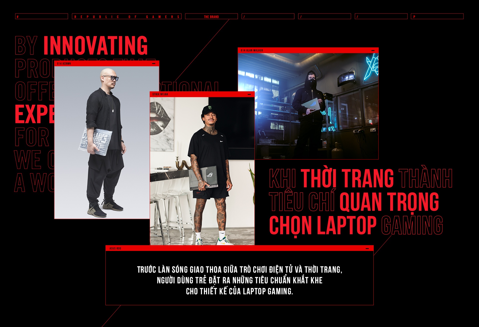 Với sự phát triển của công nghệ, laptop gaming hiện nay hoàn toàn có thể đáp ứng tốt yêu cầu khắt khe của giới trẻ về thiết kế. Phát hiện thị hiếu người dùng đang chuyển dịch theo đặc trưng của gen Z, thương hiệu Republic of Gamers (ROG) của Asus đã nhanh nhạy bắt nhịp làn sóng giao thoa giữa game và thời trang, phá bỏ khuôn mẫu thiết kế truyền thống của laptop gaming.