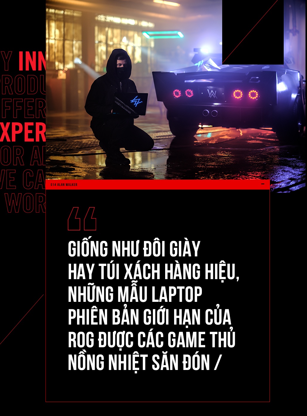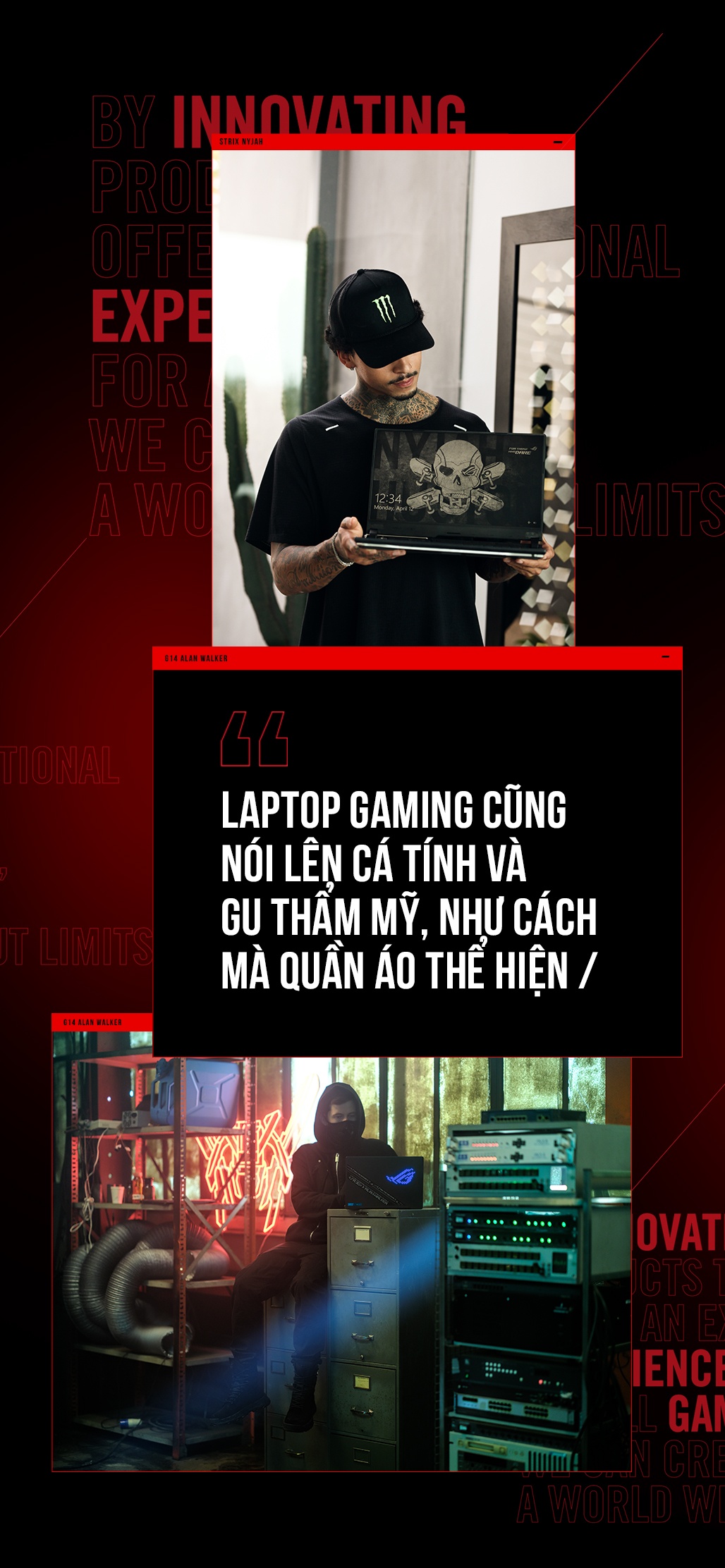 Đến với ROG Zephyrus G14, ROG càng chứng minh rõ hơn rằng hãng không chỉ làm ra các sản phẩm để phục vụ chơi game, mà đang cố gắng tạo nên một phong cách sống mới. Hướng đến đối tượng khách hàng trẻ thuộc thế hệ Z, Asus ROG bắt tay DJ tài năng Alan Walker cho ra đời phiên bản đặc biệt của sản phẩm này - cộng hưởng ấn tượng giữa âm nhạc - game - công nghệ.
