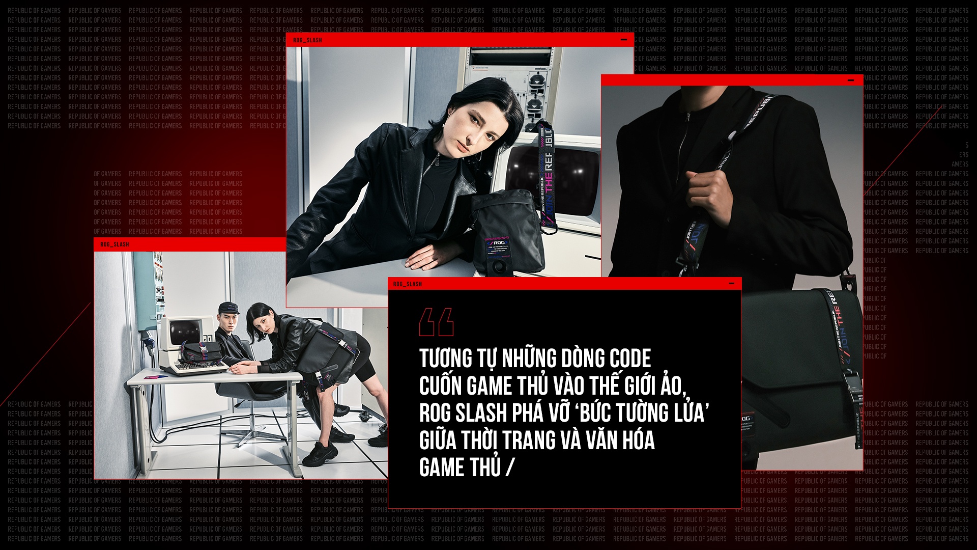 Theo Asus, như những dòng code cuốn game thủ vào thế giới ảo, ROG Slash phá vỡ “bức tường lửa” giữa thời trang và văn hóa game thủ. Được làm từ vật liệu cao cấp cùng thiết kế ấn tượng, sản phẩm của ROG Slash mang đến hiệu ứng mix&match ấn tượng không kém phụ kiện của các thương hiệu cao cấp, vừa thời trang vừa khác biệt.