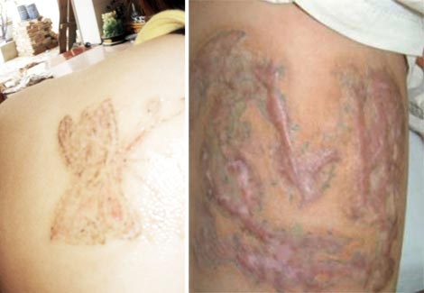 | Sẹo để lại sau khi xóa hình xăm có vết mực sâu và lâu năm. |