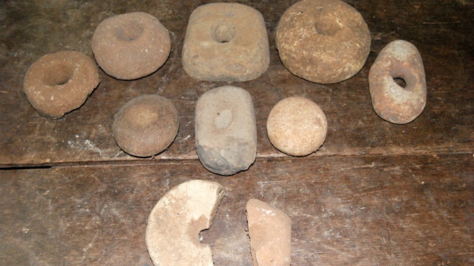 Để qua một bên những chiếc rìu đồng, gương đồng, anh Hưng kéo ra hàng bao tải đựng những công cụ đá như rìu, cuốc, bàn mài, cưa, chày nghiền... với nhiều hình dạng, kích cỡ, được làm từ các loại đá khác nhau. Trong suốt 10 năm sưu tầm hiện vật đá ở Chư Prông, anh cho biết đã tìm thấy vài chục địa điểm có thể được xem là xưởng chế tác công cụ đá tiền sử bên những con suối trong vùng.