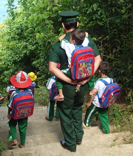 Cha mẹ các em giờ này đang ở dưới gành, trên bè nuôi cá bớp hoặc rong ruổi trên những chiếc thuyền con bươn chải, mưu sinh trong nắng gió, yên tâm giao con mình cho thầy giáo mang quân phục.