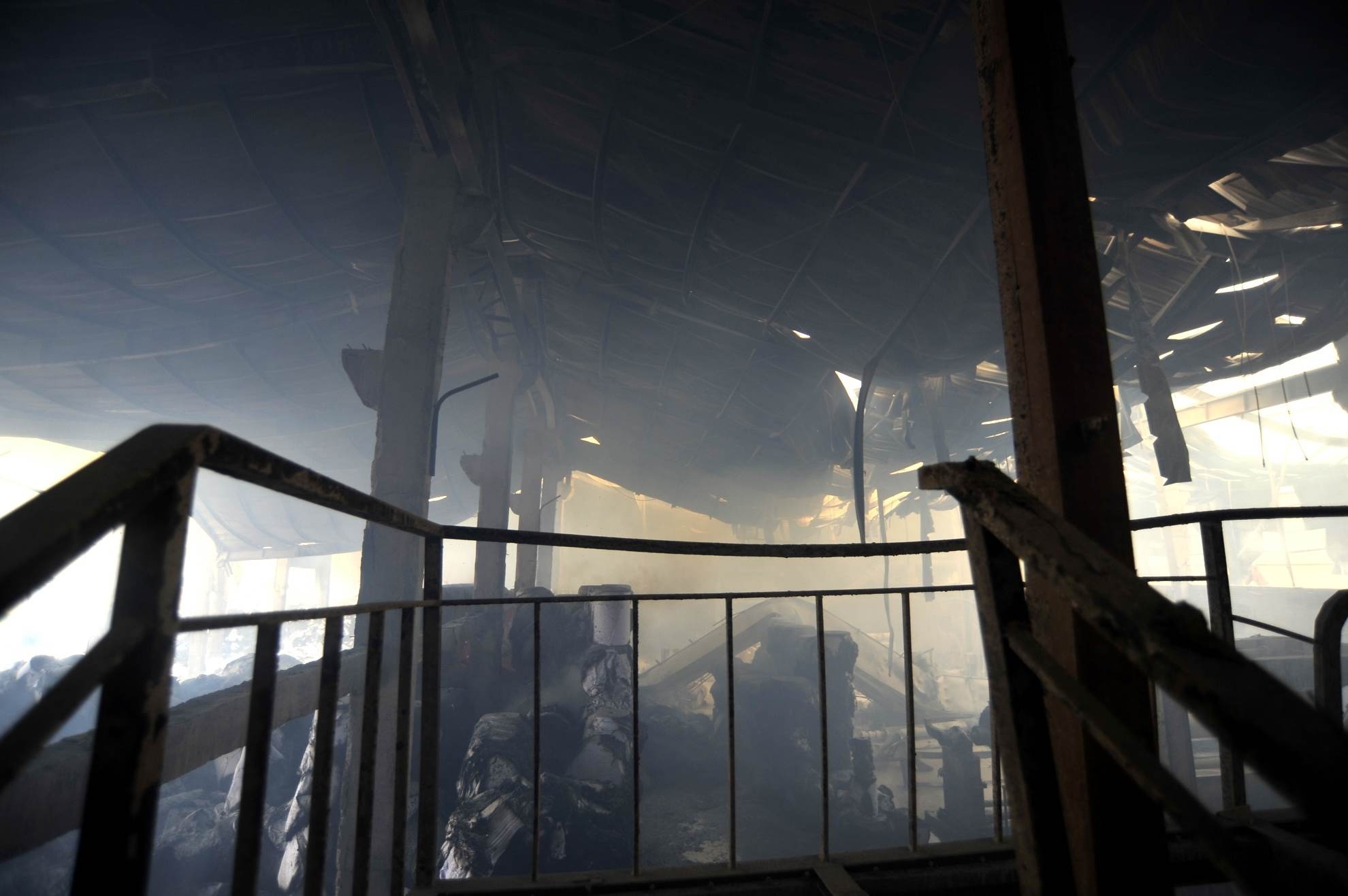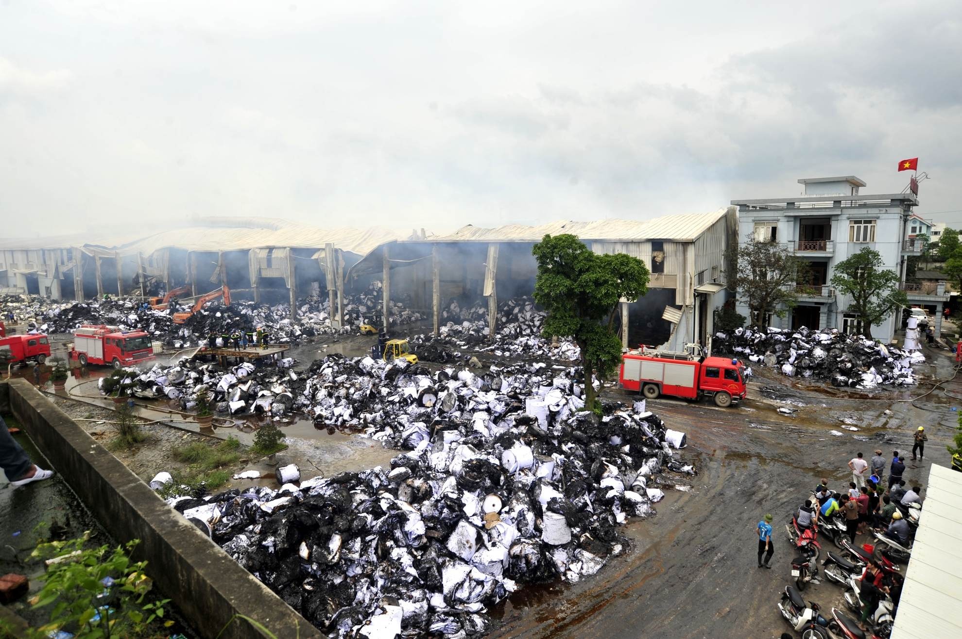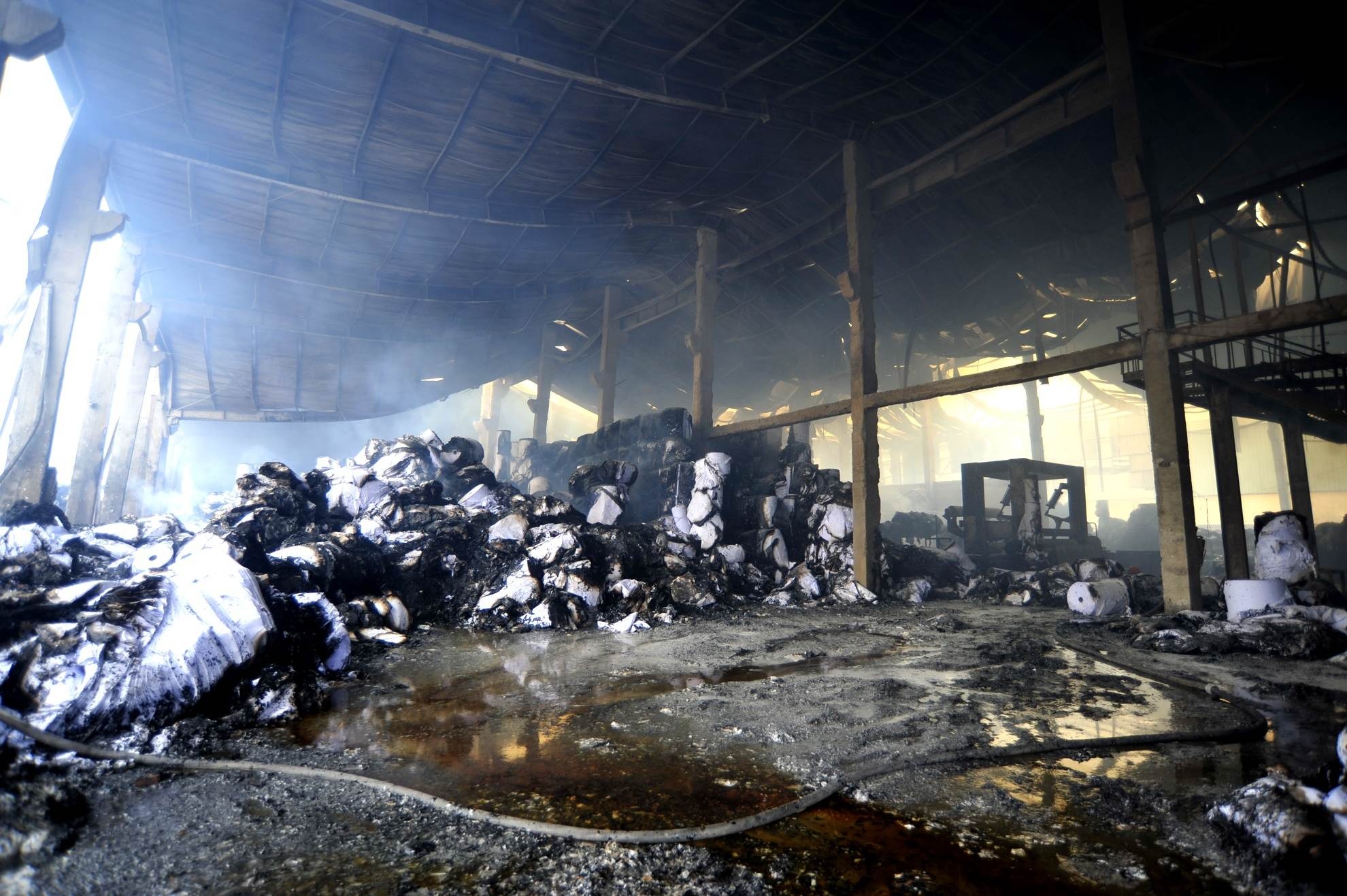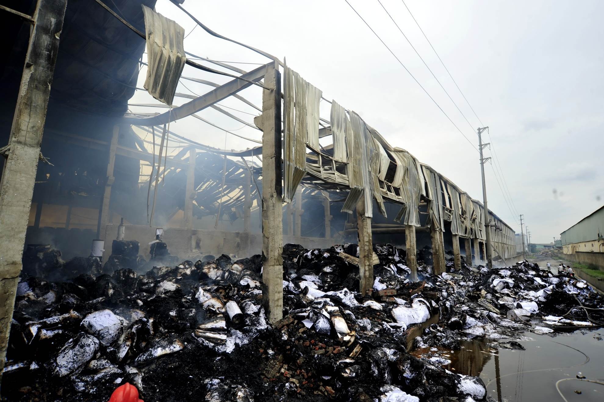 Cảnh tan hoang sau vụ hỏa hoạn suốt 10 tiếng đồng hồ. Vụ cháy xảy ra vào dịp lễ, công nhân được nghỉ, toàn bộ nhà xưởng được khóa niêm phong chỉ có hệ thống điện sáng cho bảo vệ.