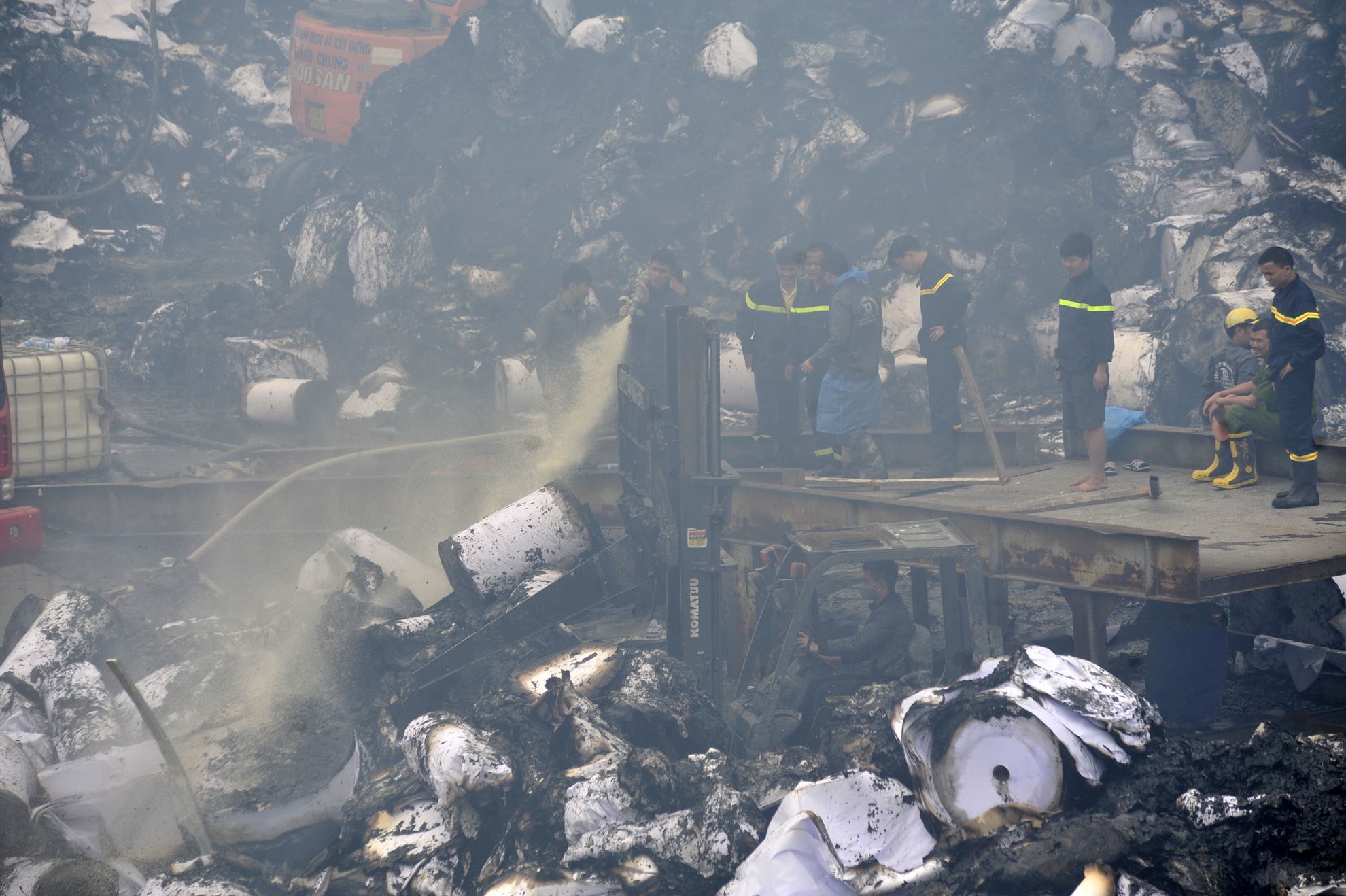 Tuy nhiên, trong kho vẫn có khu vực cháy âm ỉ.