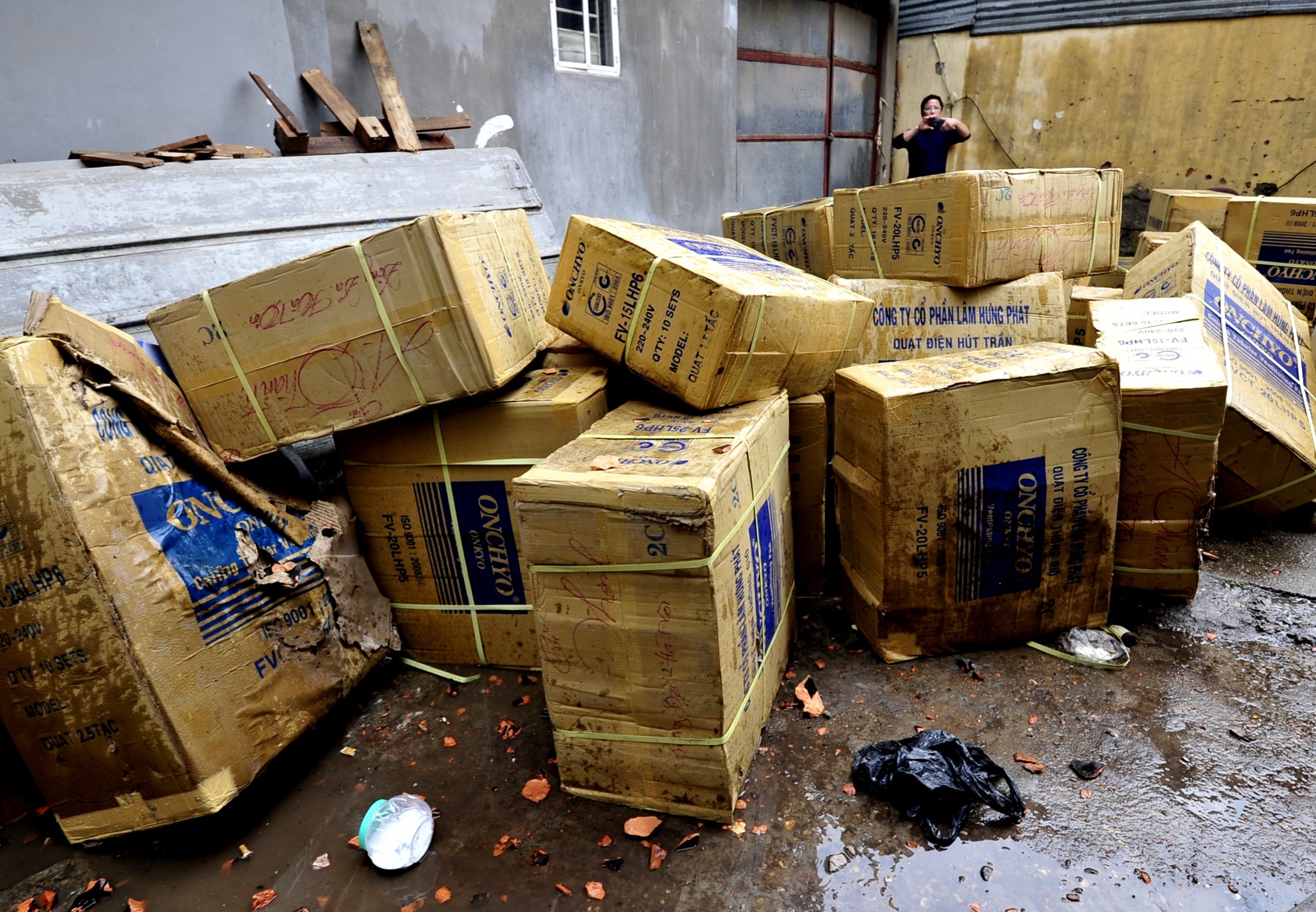 | Khi xảy ra đám cháy cán bộ công nhân viên tại đây đã kịp thời di chuyển nhiều thùng quạt ra ngoài. |