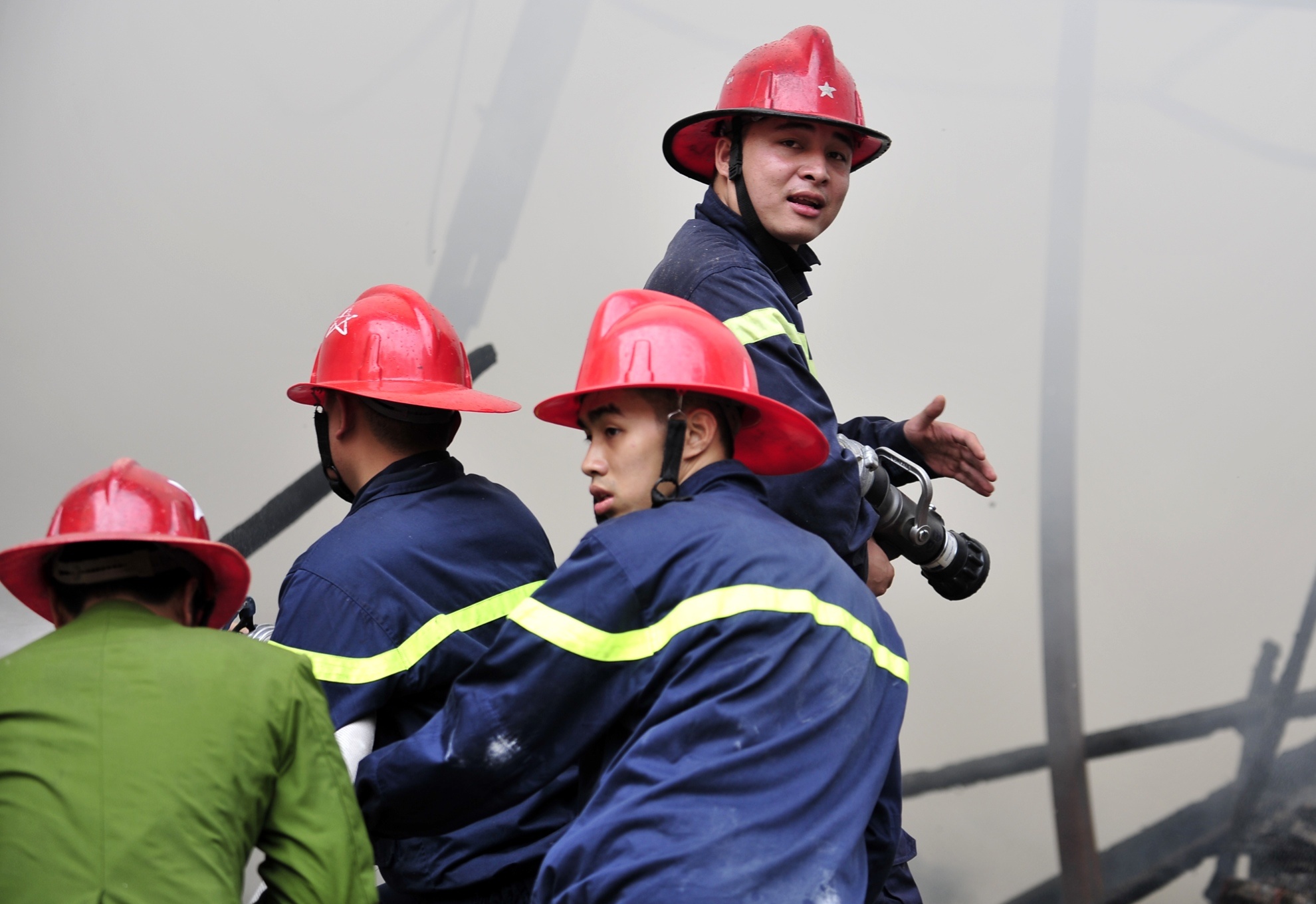 | Cảnh sát PCCC đã điều 6 xe chưa cháy từ đội Đống Đa, Hoàn Kiếm có mặt sau 20 phút. |