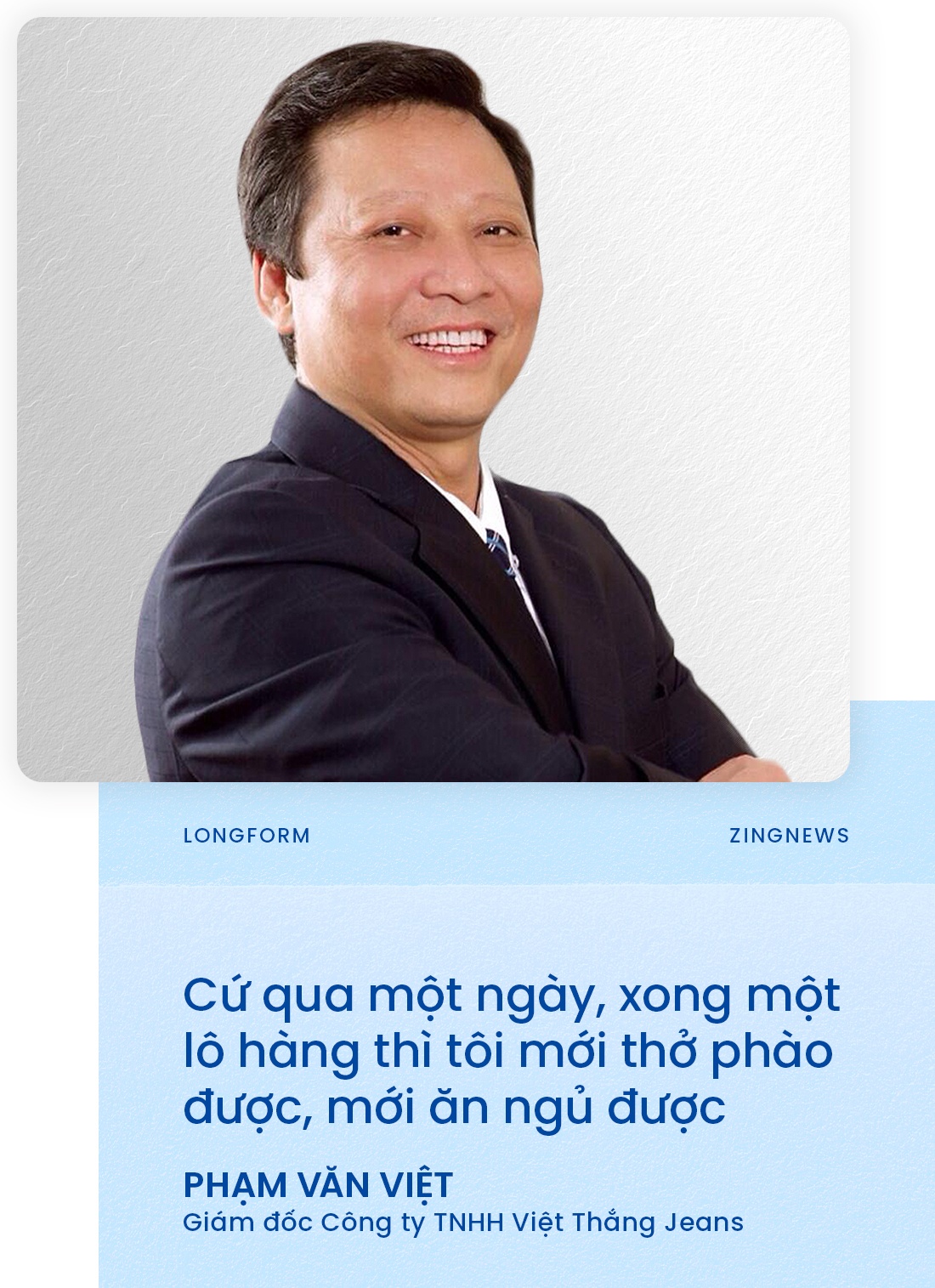Đã sụt 4 kg sau hơn 1 tháng thực hiện “3 tại chỗ”, ông Phạm Văn Việt, Giám đốc Công ty TNHH Việt Thắng Jeans (TP Thủ Đức, TP.HCM) nói rằng: “Cứ qua một ngày, xong một lô hàng thì tôi mới thở phào được, mới ăn ngủ được”.