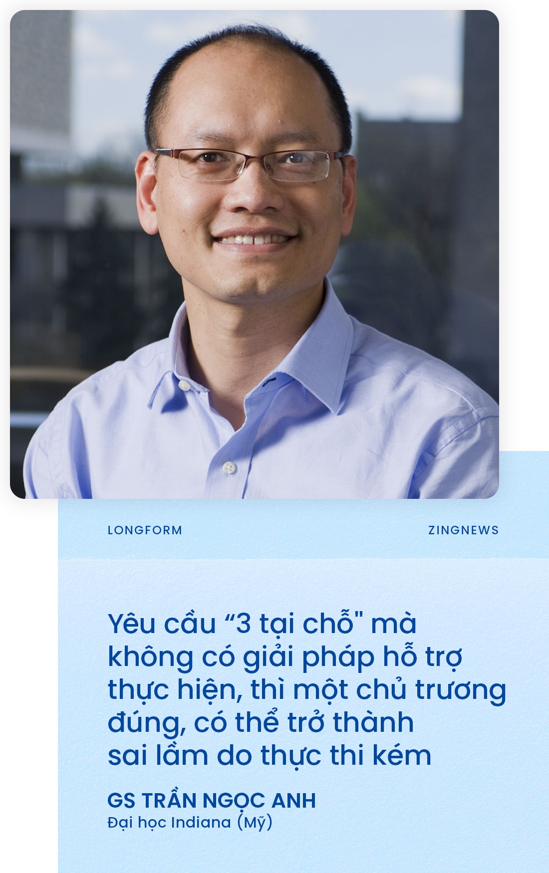 GS Trần Ngọc Anh (Đại học Indiana, Mỹ) cho rằng nếu chính quyền địa phương chỉ yêu cầu “3 tại chỗ và 1 cung đường, 2 điểm đến” mà không có giải pháp hỗ trợ doanh nghiệp thực hiện, thì một chủ trương đúng, có thể trở thành sai lầm do thực thi kém.