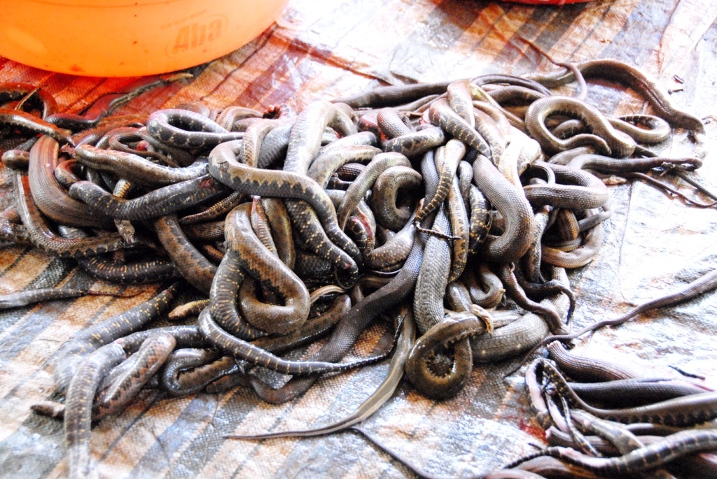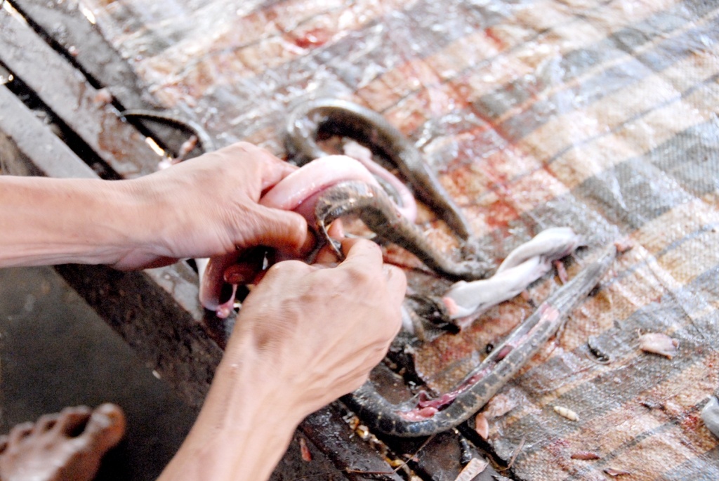 Còn pín rắn đực được phơi khô, bán giá từ 500 -700 đồng/cái, tùy theo lớn nhỏ, chủ yếu dùng để ngâm rượu.