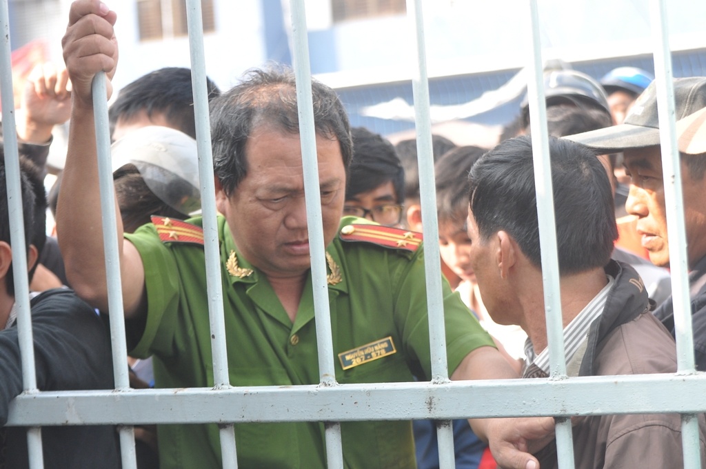 | Lực lượng an ninh cũng được huy động để giữ trật tự cho việc bán vé |
