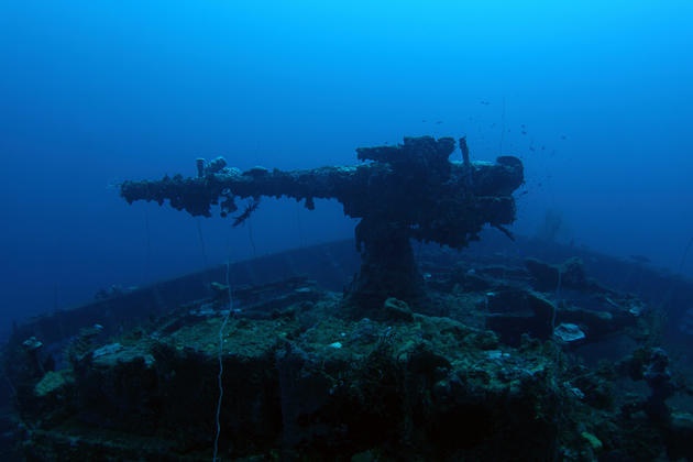 Dù là tàu hàng nhưng Nippo Maru vẫn được trang bị vũ khí nhằm chống lại mối đe dọa từ tàu chiến đối phương. Hàng chục năm chôn mình dưới đáy biển, vũ khí giết người này cũng hóa kiếp thành nhà của các loài sinh vật biển. |