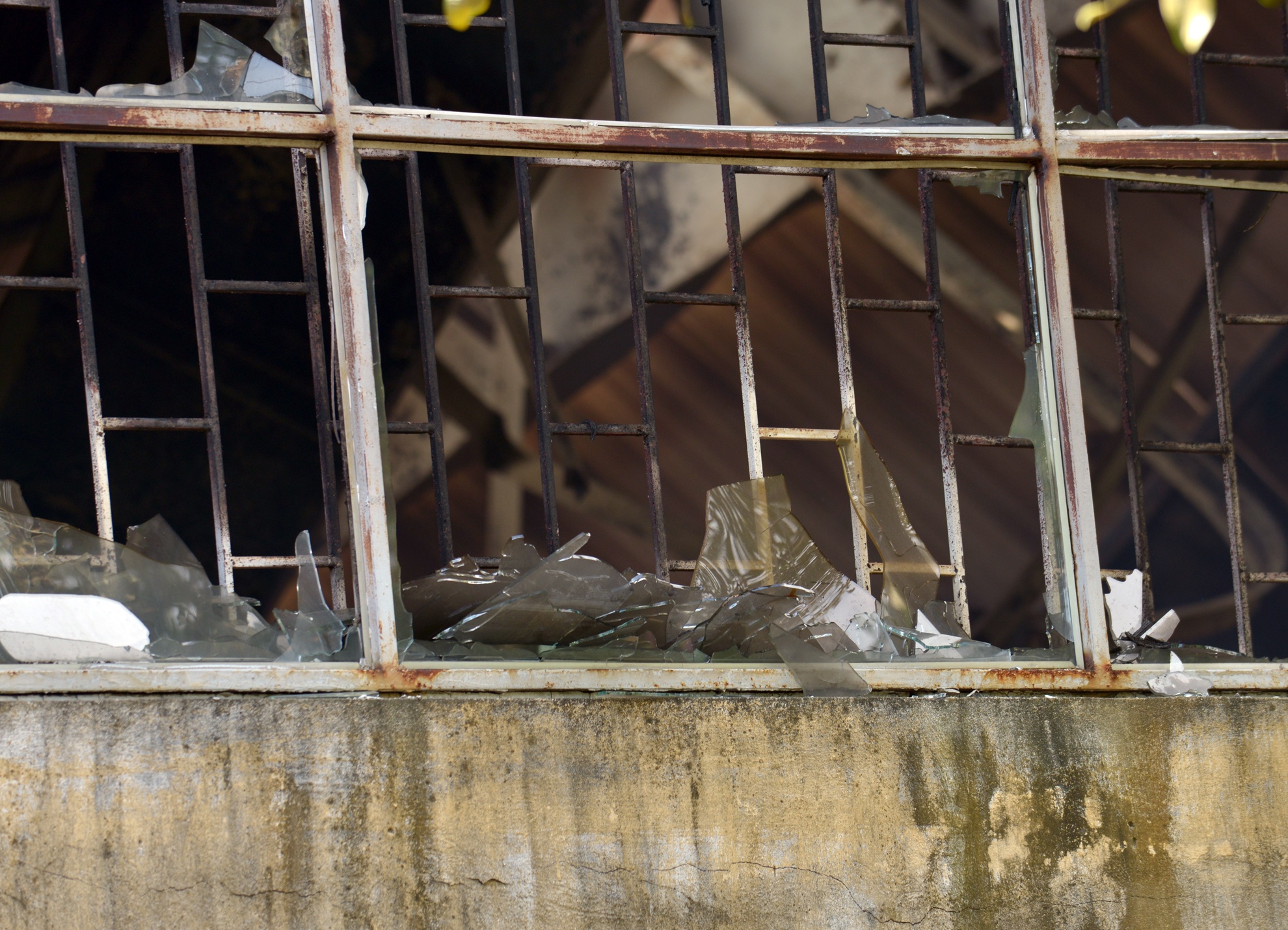 | Sức nóng từ vụ hỏa hoạn khiến cửa kính toàn bộ kho hàng bị phá vỡ. |