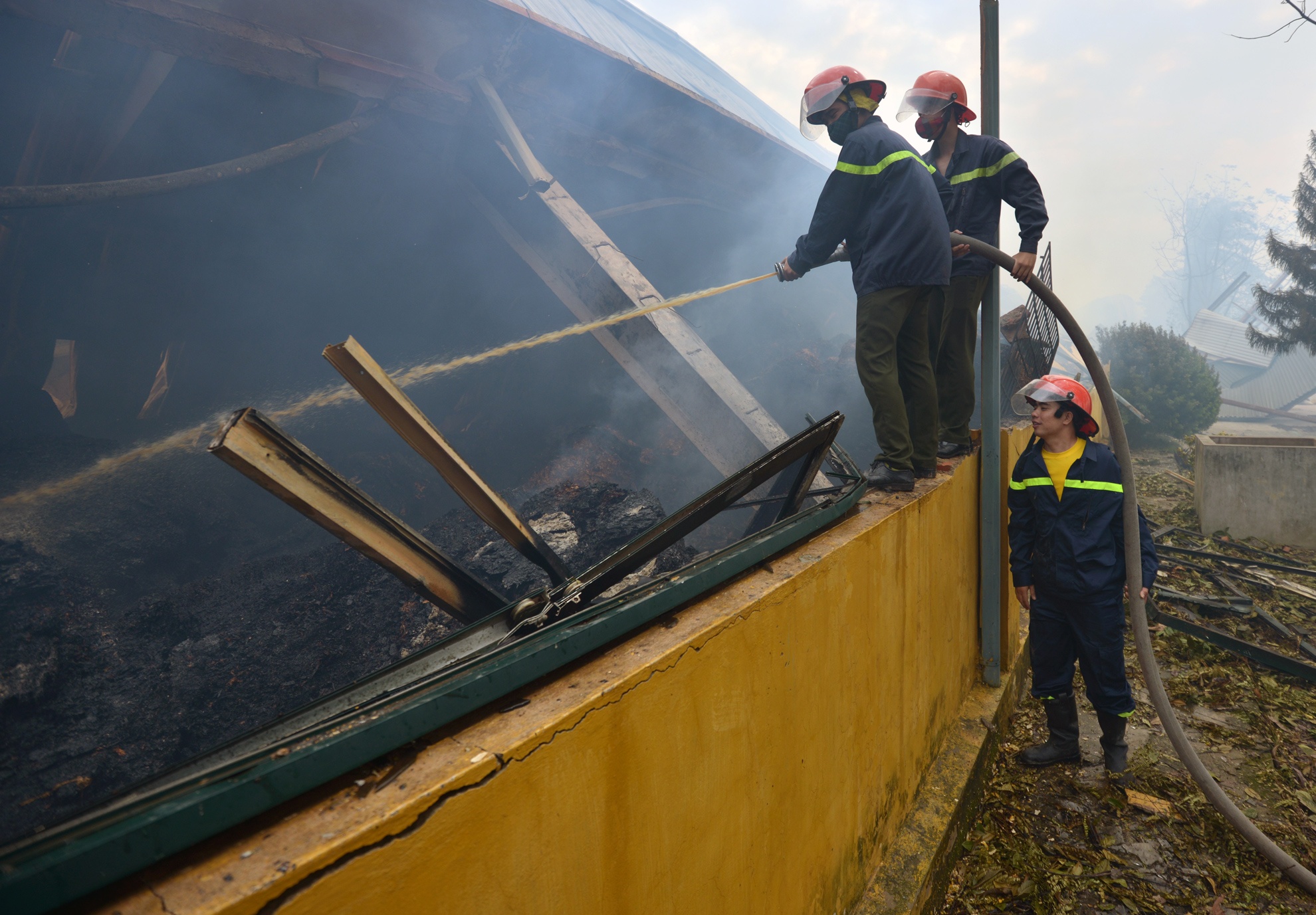 Khi lực lượng PCCC phá tường, rào tôn gió lớn ùa vào thổi bùng nhiều lô lá thuốc đang âm ỉ bùng cháy. Khói vẫn ngùn ngụt phả ra ngoài khiến vòi rồng không thể dập tắt ngay được. Lực lượng cứu hộ phải tìm cách ngăn cách các phân xưởng với nhau, tránh trường hợp cháy lan diện rộng do tàn than có thể gây cháy liên hoàn.