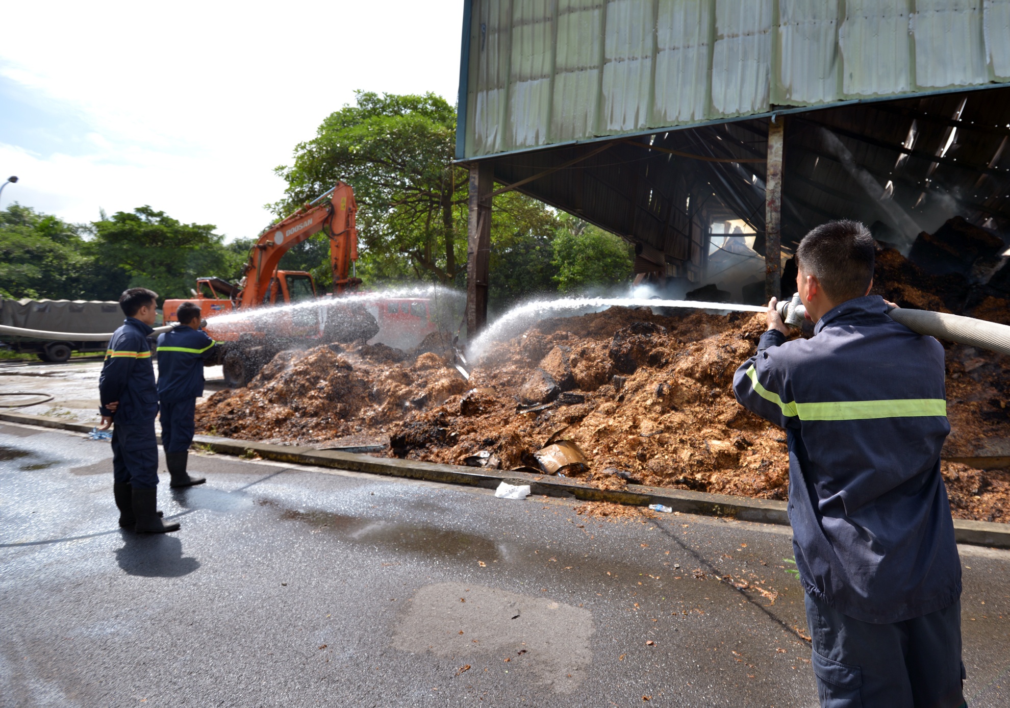 Tới 10h ngày 20/8, một số phân xưởng nằm sâu trong kho lửa vẫn cháy lớn. Một cảnh sát PCCC tại hiện trường cho biết, lá thuốc chế phẩm được nén chặt thành từng khối 0,5x0,5 m xếp thành từng lô lớn chồng lên nhau. Lá thuốc bắt lửa, cháy âm ỉ khiến việc dập lửa khó khăn.