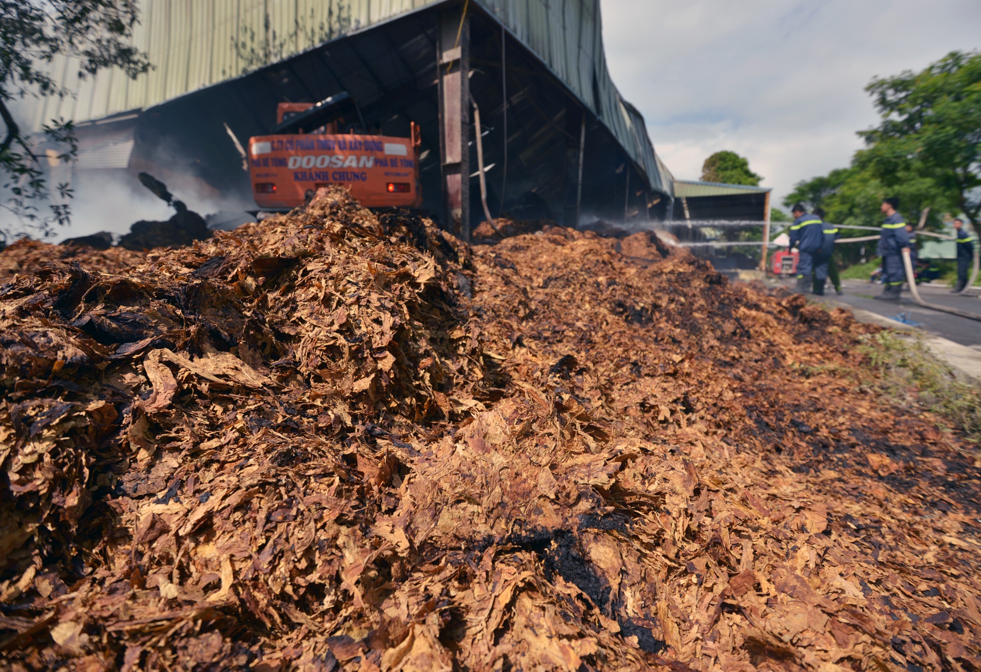 | Ước tính, vụ hỏa hoạn đã thiêu rụi khoảng 3.000 tấn lá thuốc chế phẩm. |
