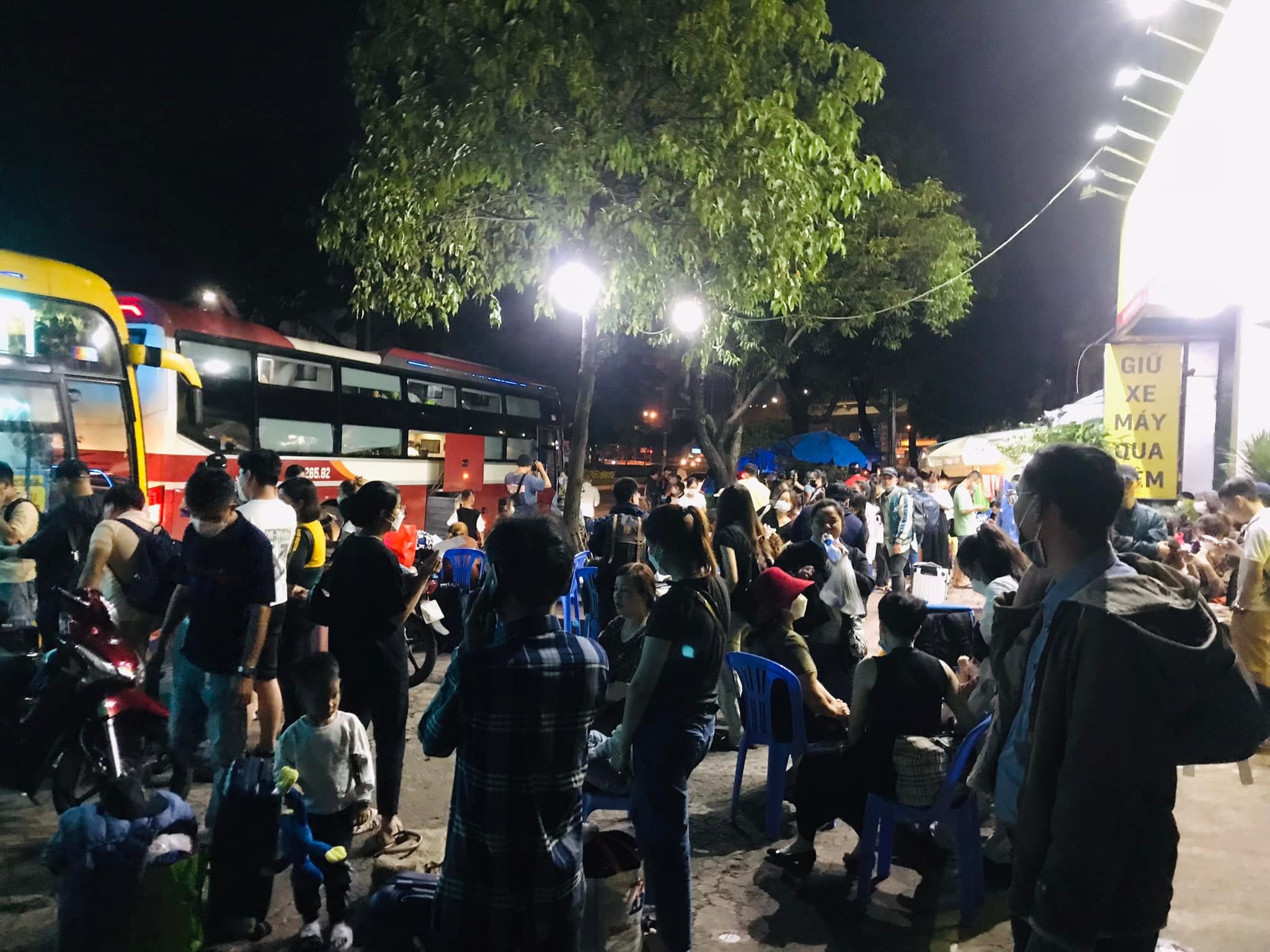 | Bến xe đi Đà Lạt tại Hàng Xanh (TP.HCM) đông đúc vào tối 19/6. Ảnh: Xuân Nguyễn. |