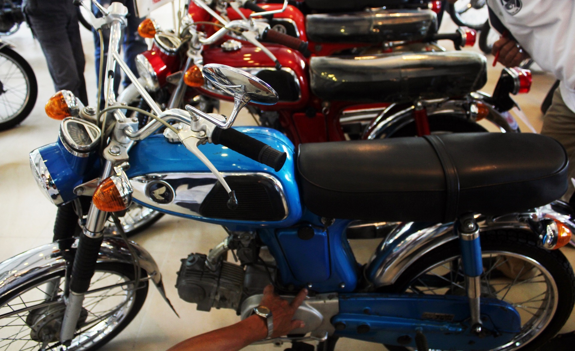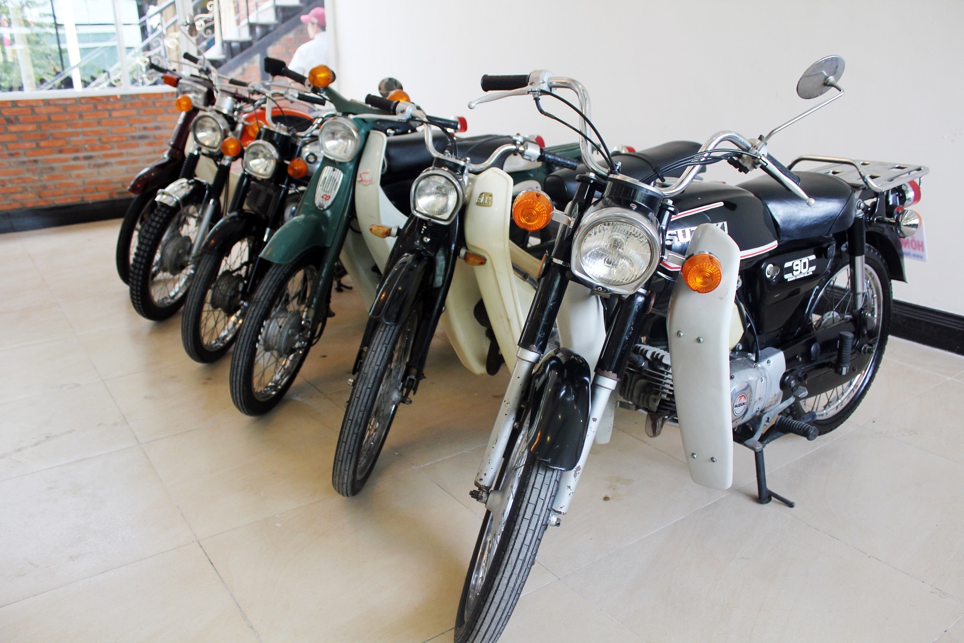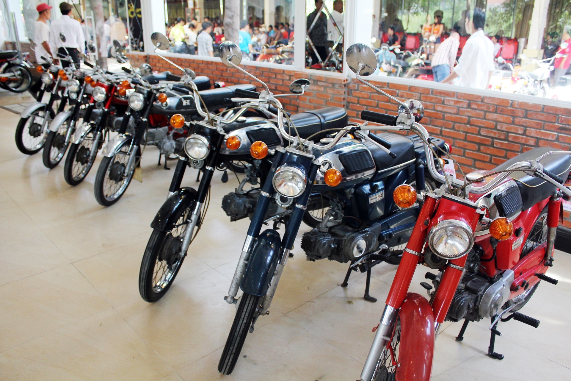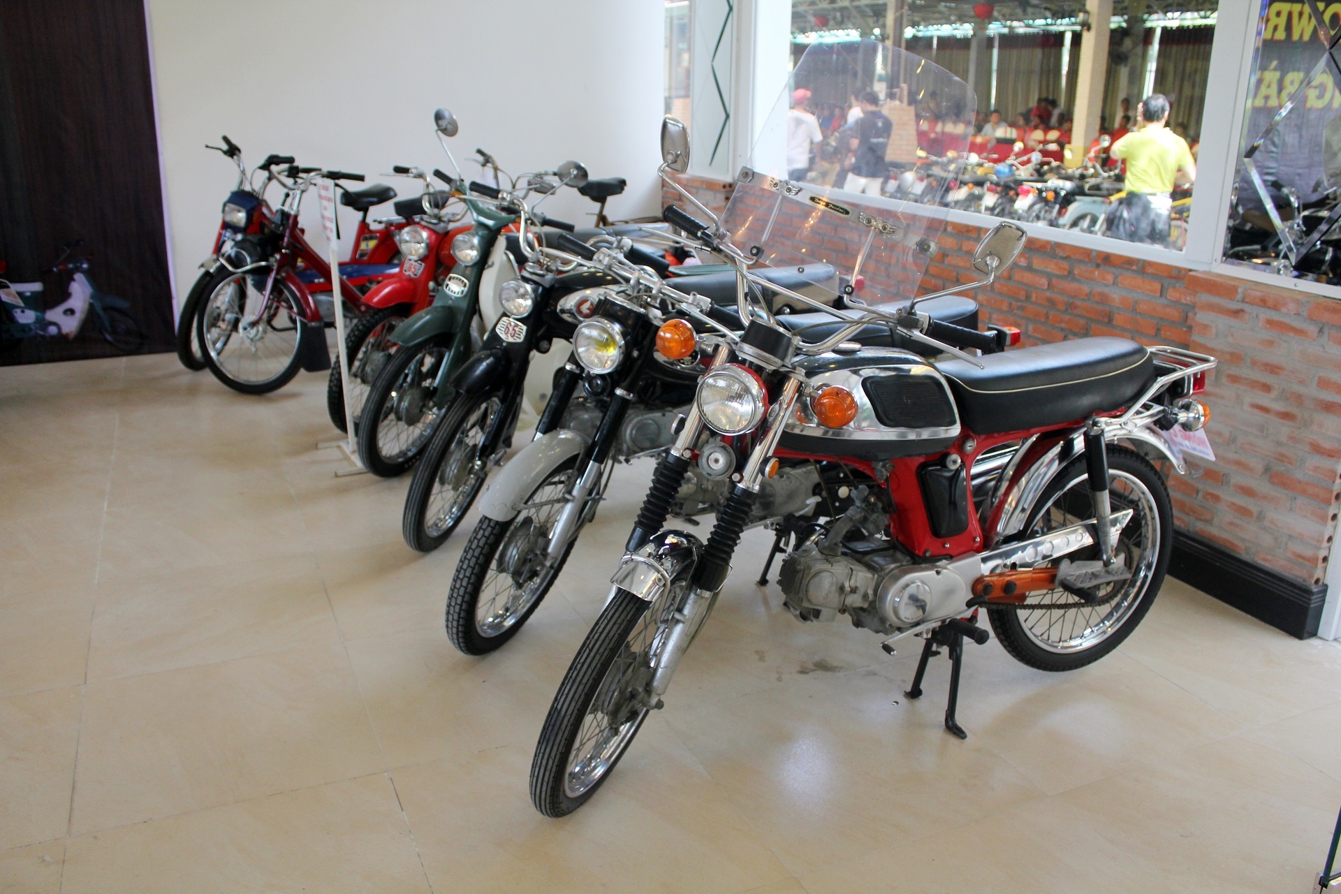 | Mẫu Honda SS 50 với nhiều chi tiết còn nguyên bản được trưng bày ở vị trí trung tâm showroom. Chữ SS viết tắt của cụm từ supersport. Đây là mẫu xe dành cho nam, được sản xuất năm 1972. Xe có dung tích xi-lanh 49cc, 4 thì, 5 số. Dựa trên khung sườn mẫu xe sản xuất năm 1967, hãng xe Nhật Bản cho ra mắt kiểu dáng mới, sang trọng, lịch sự hơn. |