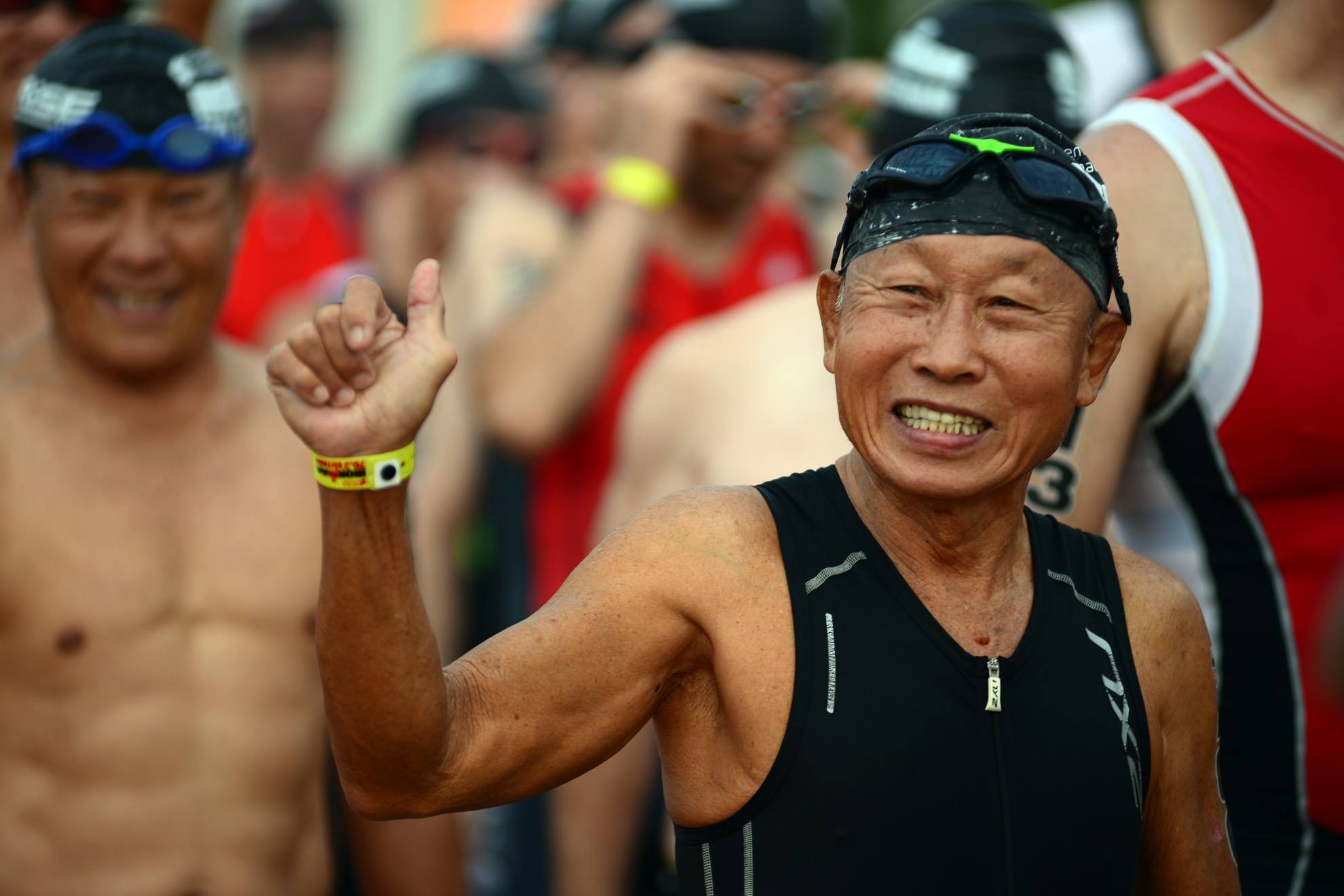 Cuộc thi VNG Ironman 70.3 lần đầu tổ chức tại Việt Nam có cả cụ ông gần 80 tuổi tham dự. Ảnh: Lê Anh Tuấn.