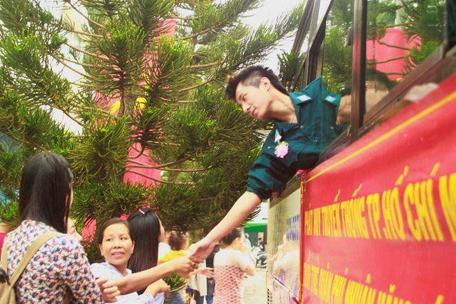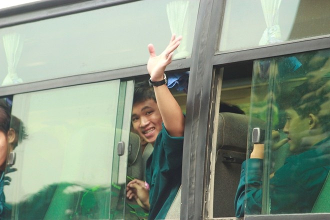 | Chuyến xe cuối đưa các thanh niên nhập ngũ vào một đơn vị trong nội thành TP. |