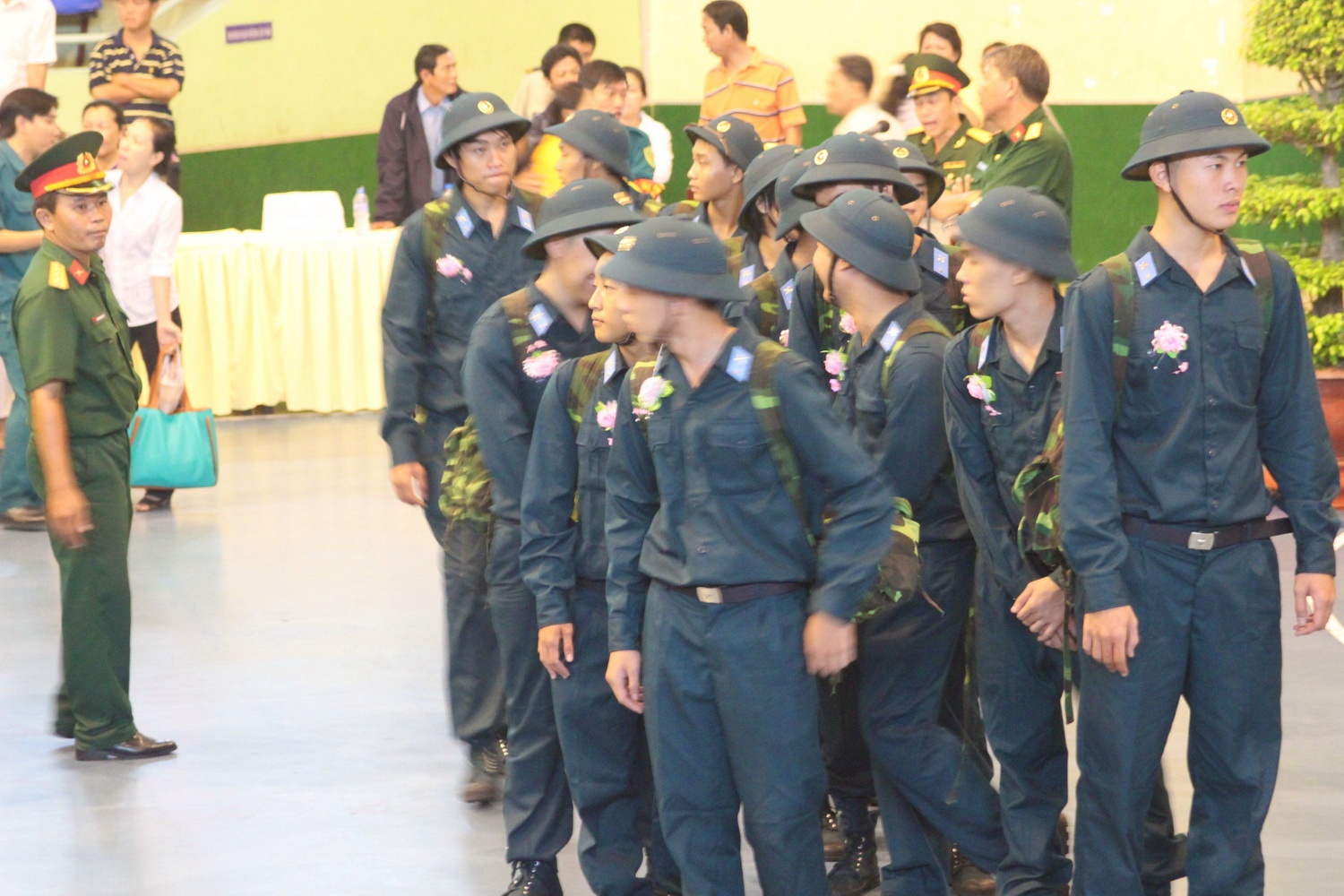 Hội đồng nghĩa vụ quân sự TP.HCM cho biết trong đợt này có 2.550 thanh niên các Q.1, 2, 4, 6, 7, 8, 10, 11, Phú Nhuận, Bình Thạnh, Tân Bình và huyện Nhà Bè lên đường nhập ngũ. Trong ảnh: Lễ giao nhận quân tại Q.Phú Nhuận.