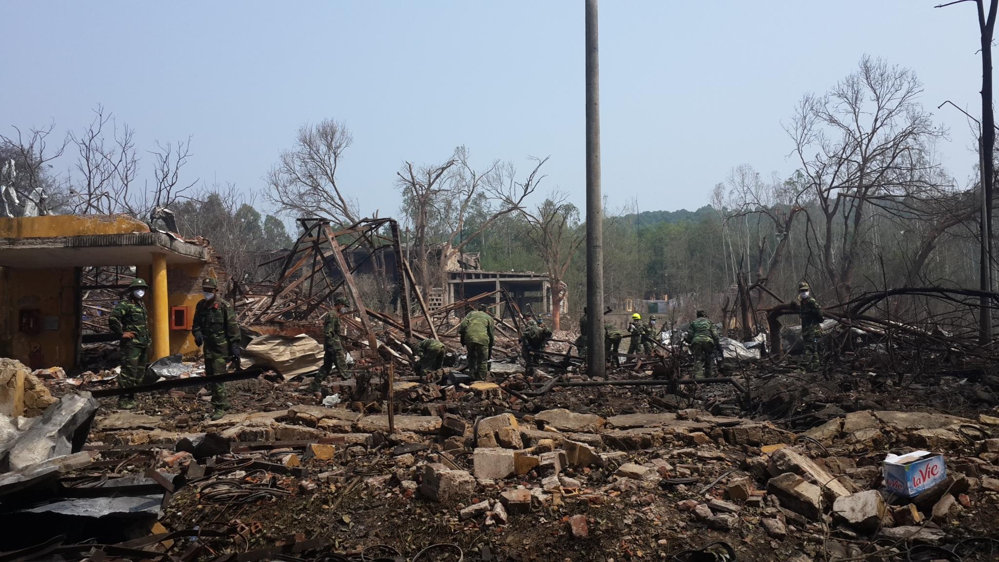 | Hiện trường tan hoang ở nhà máy Z121 sau vụ nổ pháo hoa. |