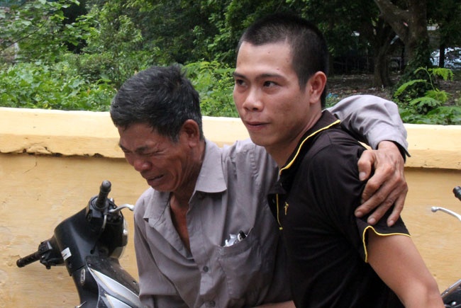 Phạm nhân Đỗ Duy Điền ở Đông Anh xúc động khi nhìn thấy vợ và con của mình đến đón.