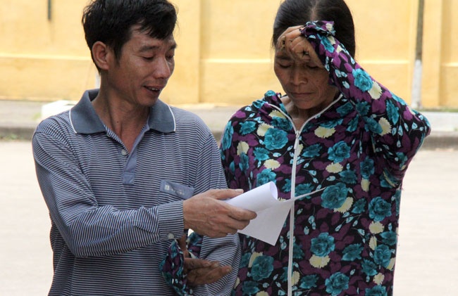 Người phụ nữ với dáng vẻ khắc khổ cũng mừng mừng tủi tủi bật khóc khi nhìn thấy người thân của mình.