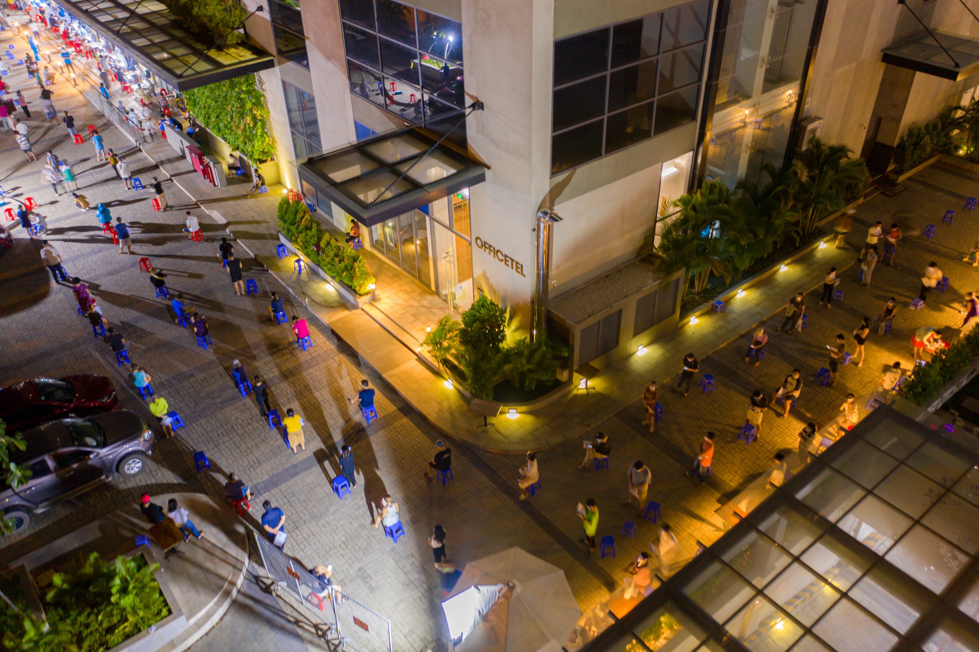 Tối 4/8, người dân tổ dân phố 1, 2, 3 thuộc phường 5 (quận 8) trưng dụng sân trước của chung cư Giai Việt (đường Tạ Quang Bửu) để làm điểm tiêm vaccine Covid-19. Để đảm bảo giãn cách, UBND phường 5 phân bổ số lượng và thời gian tiêm cụ thể cho từng trường hợp trên địa bàn, có thông báo hoặc thư mời gửi đến người dân đã đăng ký để tiêm vaccine. Ảnh: Duy Hiệu.