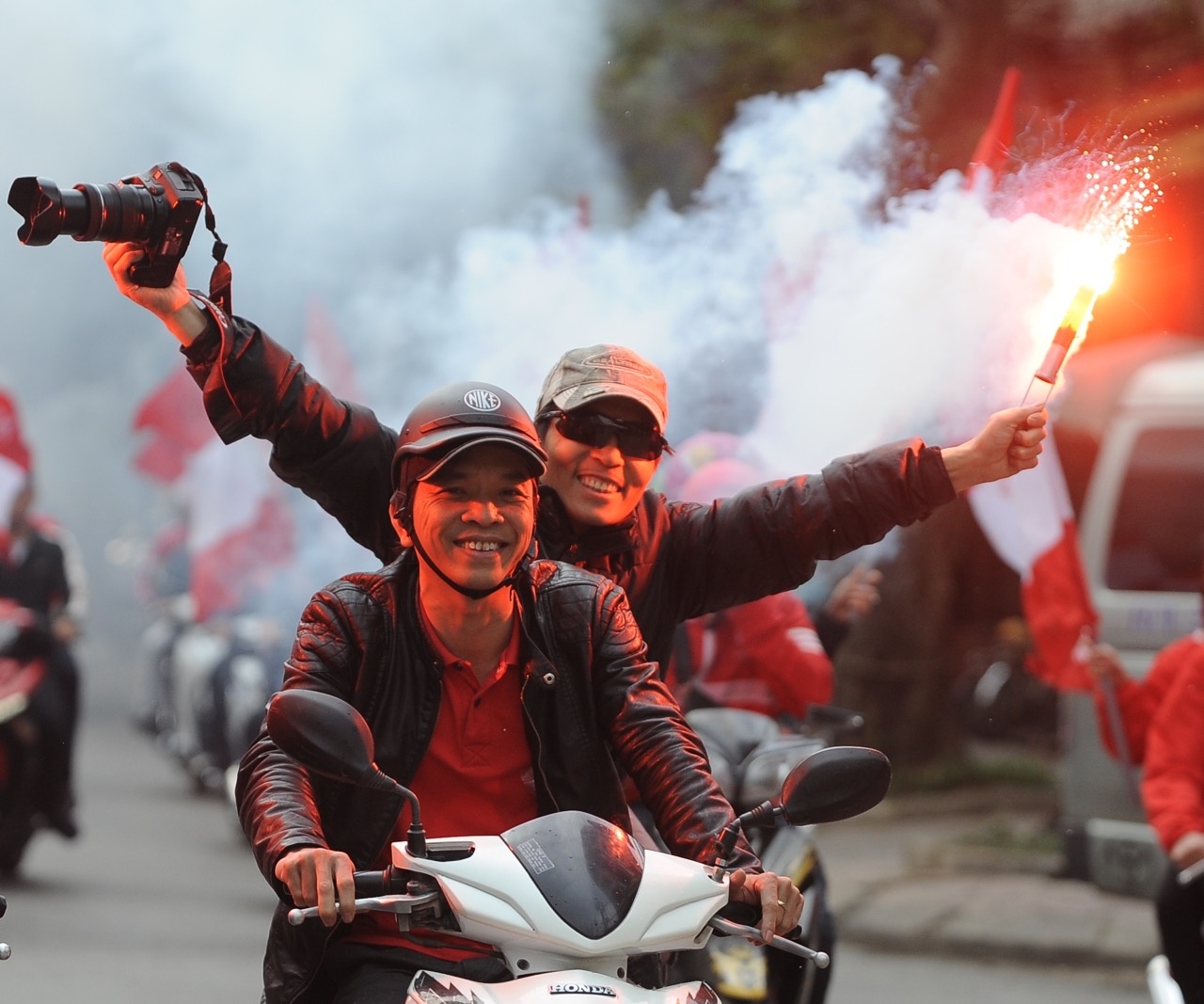 Cũng trong sáng 28/2, CĐV Hải Phòng đốt pháo sáng, diễu hành khắp các tuyến phố chính để khích lệ tinh thần thầy trò HLV Trương Việt Hoàng, trước lượt đấu thứ 2 tại V.League 2016.