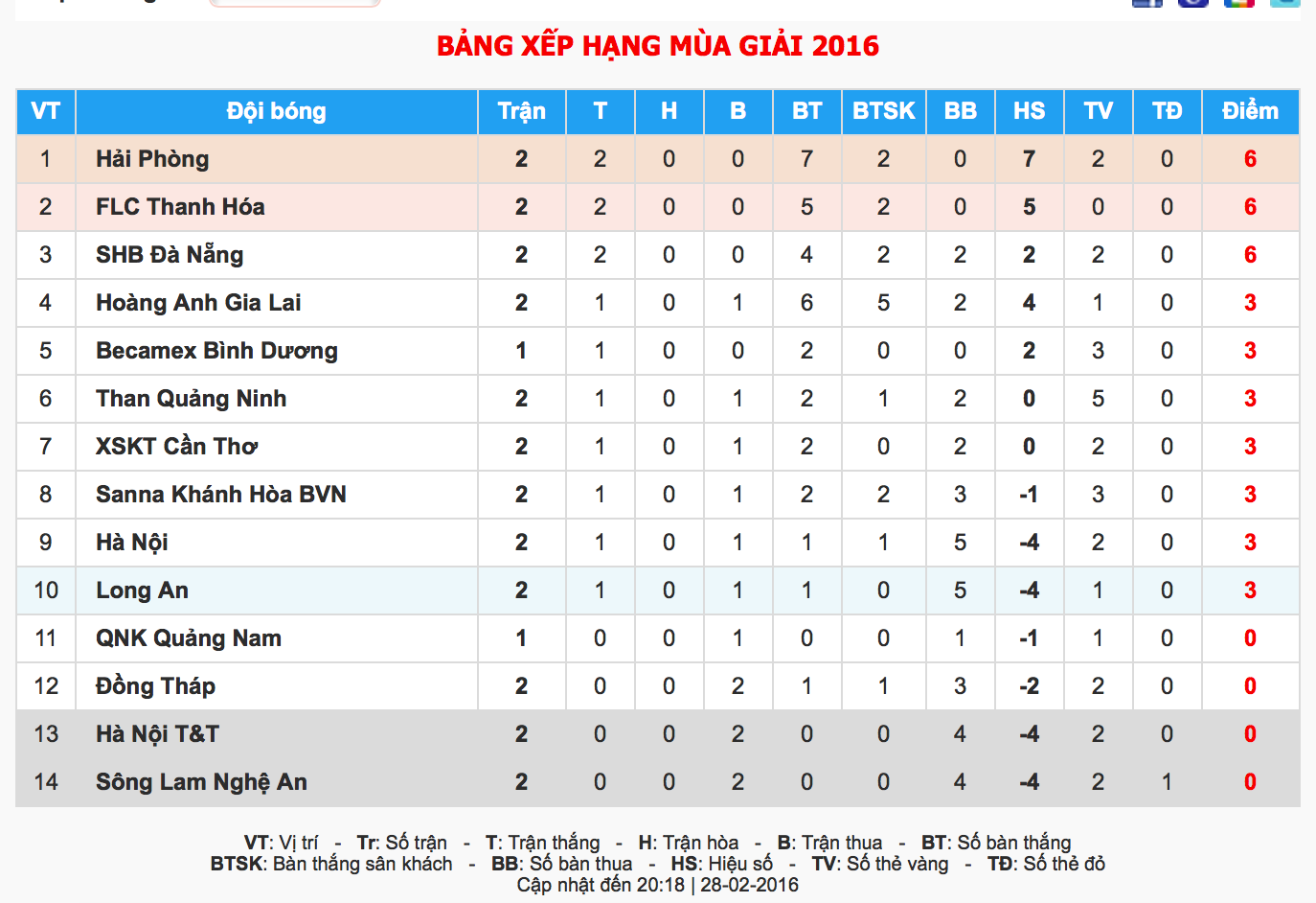 Với chiến thắng 5-0 trước Long An trên sân nhà Lạch Tray, thầy trò HLV Trương Việt Hoàng tạo nên bất ngờ khi vượt qua các đội bóng lớn để xếp vị thứ nhất trên bảng xếp hạng.