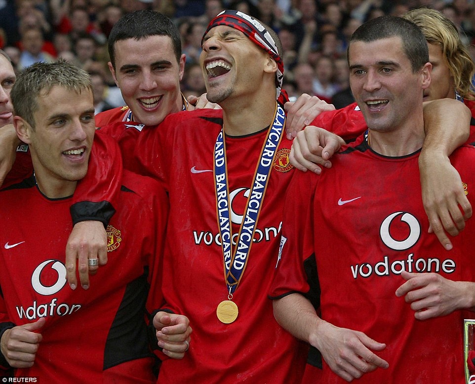 | Ngay mùa đầu tiên thi đấu tại Old Trafford, Rio Ferdinand giúp Quỷ đỏ lên ngôi tại Premier League tháng 5/2003. |