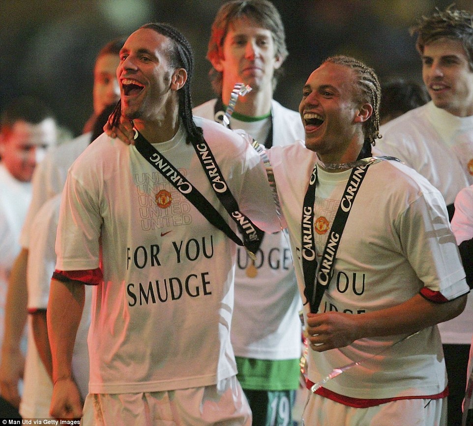 | Ferdinand ăn mừng chức vô địch Premier League thứ 4 trong sự nghiệp cùng các đồng đội ở Manchester United năm 2009. |