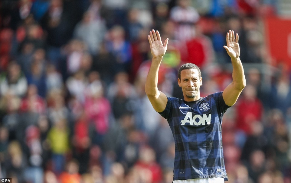 | Ferdinand cảm ơn người hâm mộ M.U khi đá trận cuối cùng trong màu áo Quỷ đỏ tháng 5/2014 (gặp Southampton). |