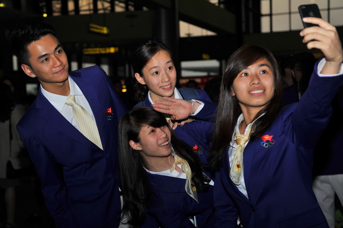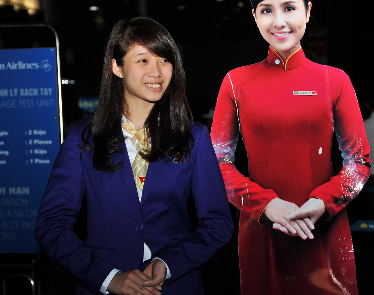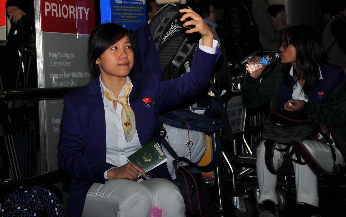 | Dương Thúy Vi tự tin chụp ảnh trước khi lên đường cùng Đoàn TTVN dự SEA Games 27. |