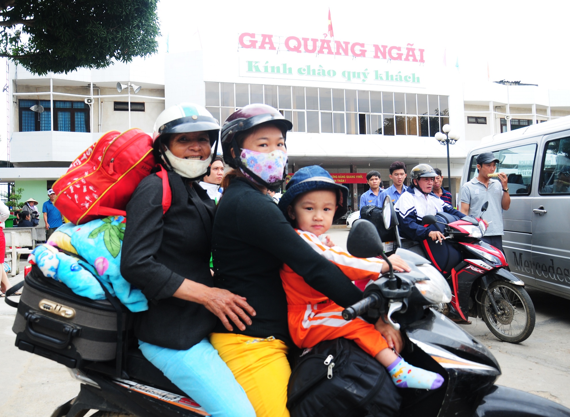 Ông Trương Đình Hiển, Phó giám đốc Trung tâm Kinh doanh vận tải đường sắt và Dịch vụ tổng hợp ga Quảng Ngãi cho biết, những ngày cận tết, mỗi ngày có 17 đoàn tàu đưa 3.000 đến 4.000 người dân, sinh viên từ TP HCM về quê. Dịp tết này, Ga Quảng Ngãi tăng cường tàu SQ2, sức chở khoảng 550 khách.
