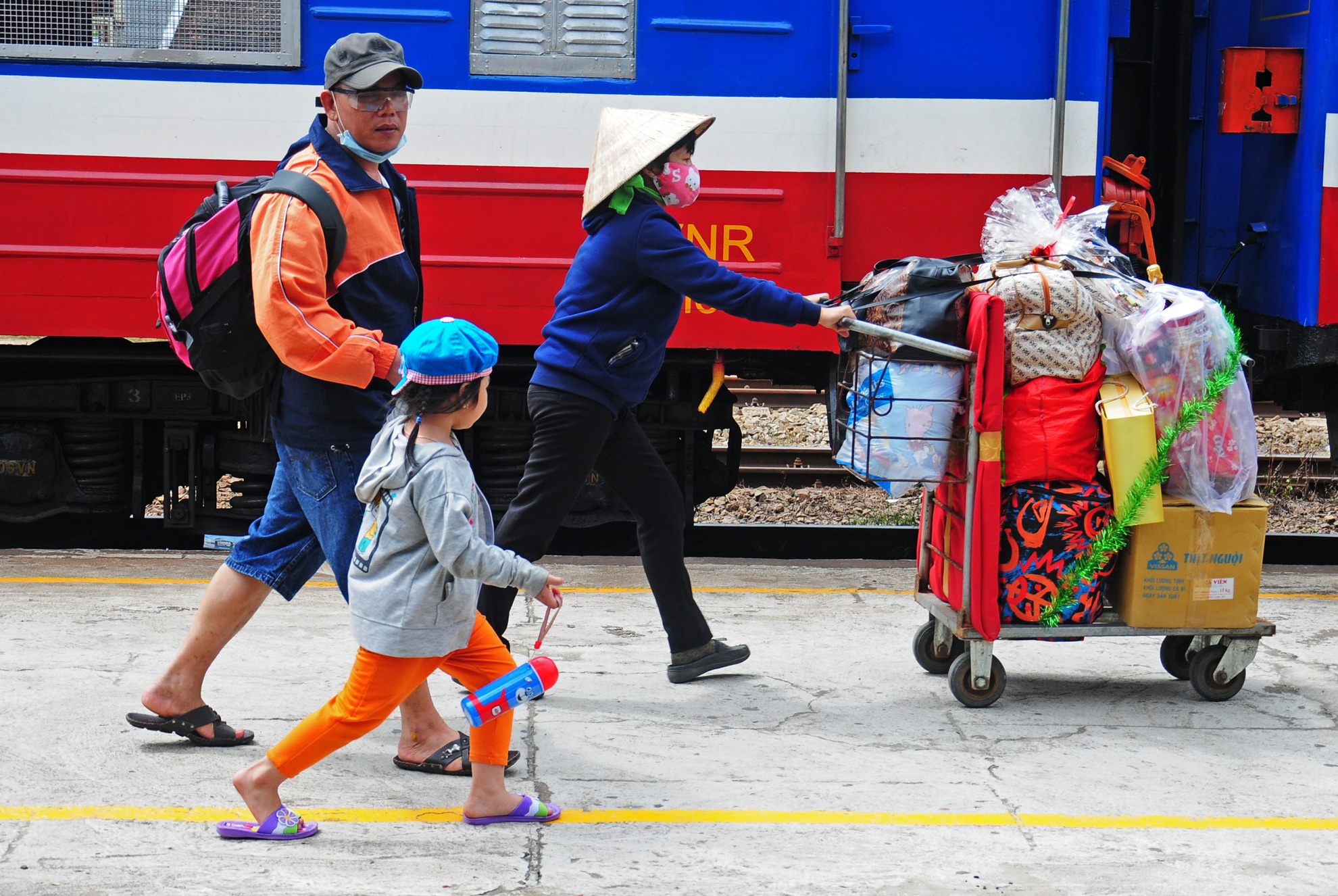 | Những người con xa quê bước chân hối hả mong sớm về nhà thăm người thân sau năm dài xa cách. |