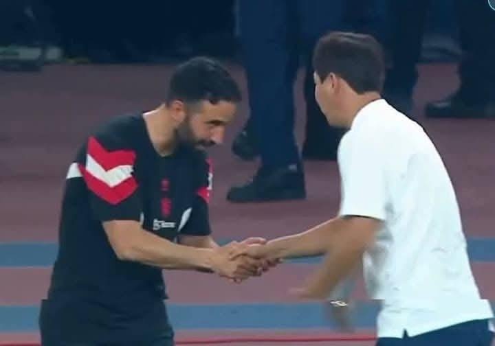 Khoảnh khắc hai nhà cầm quân bắt tay nhau sau trận đấu vốn chỉ mang ý nghĩa xã giao thông thường. Tuy nhiên, trong bối cảnh HLV Kim liên tiếp gặt hái thành công cùng bóng đá Việt Nam, hình ảnh ấy bỗng được cộng đồng mạng nhìn nhận theo góc nhìn khác.