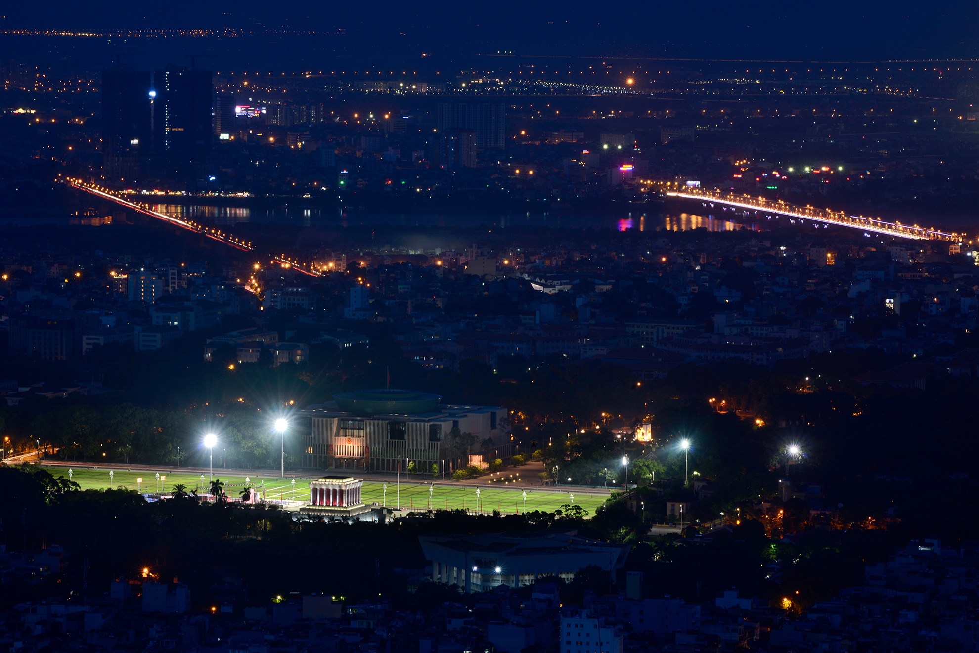 | Khu vực Lăng Chủ tịch Hồ Chí Minh và cầu Long Biên (góc trái), Chương Dương (góc phải). |