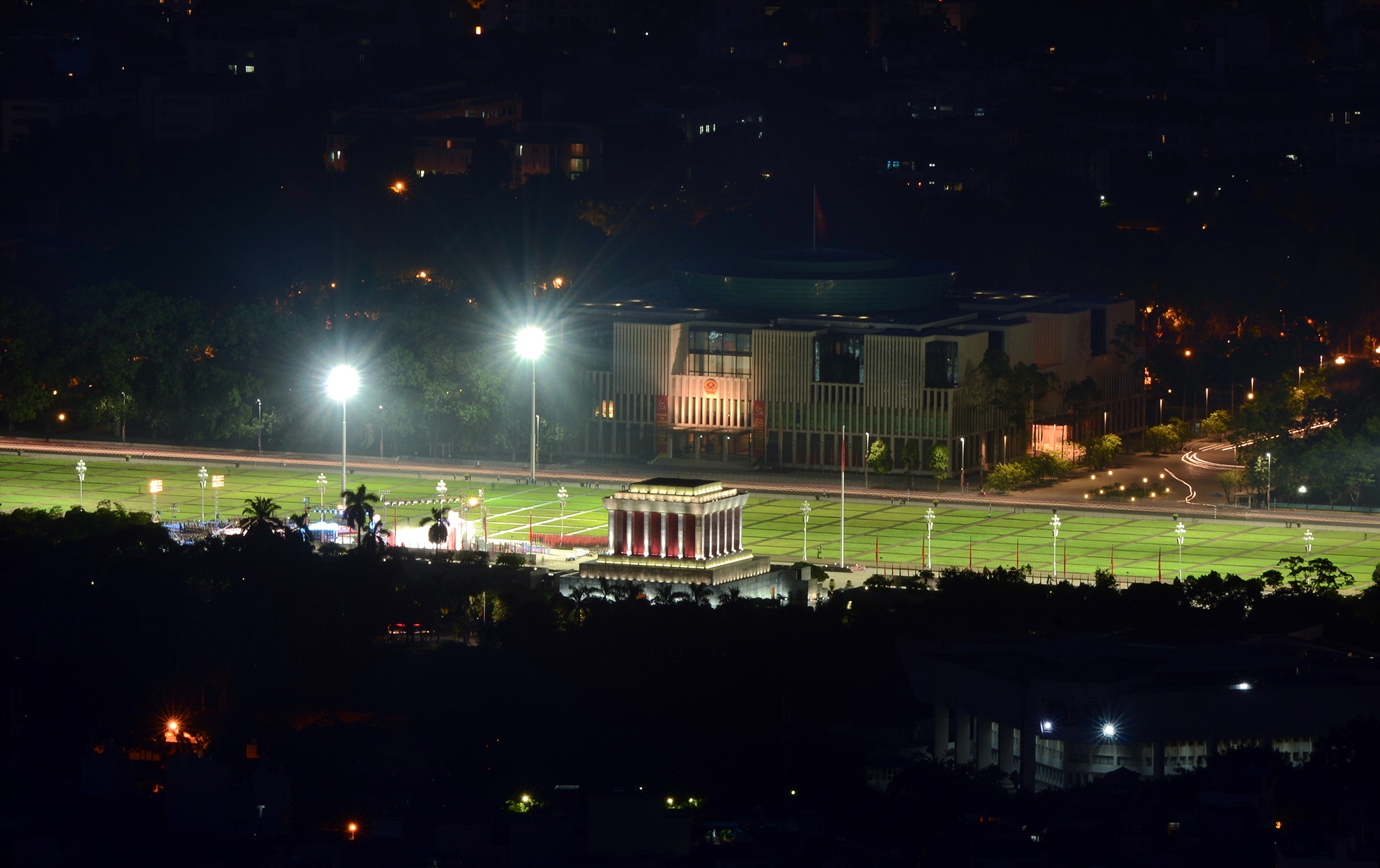 | Đối diện Lăng Chủ tịch Hồ Chí Minh là Nhà Quốc hội vừa được khánh thành. Tòa nhà được xây dựng trên nền Nhà Quốc hội cũ trong khuôn viên khu di tích Hoàng thành Thăng Long. |