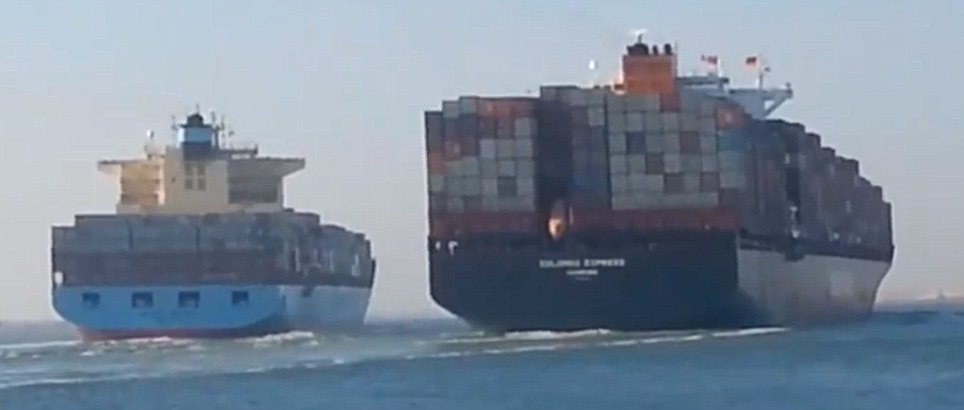 | Sự cố xảy ra giữa tàu chở container MV Colombo Express của Đức và tàu MV Maersk Tanjong của Singapore. Hai tàu này va chạm tại cửa kênh đào Suez, Ai Cập khiến tàu Đức bị lõm một vết dài khoảng 20 m và 3 container của tàu rơi xuống nước, The Telegraph đưa tin. Mọi người trên hai tàu đều an toàn. Tuy nhiên, vụ va chạm khiến việc thông thương bị tê liệt. |