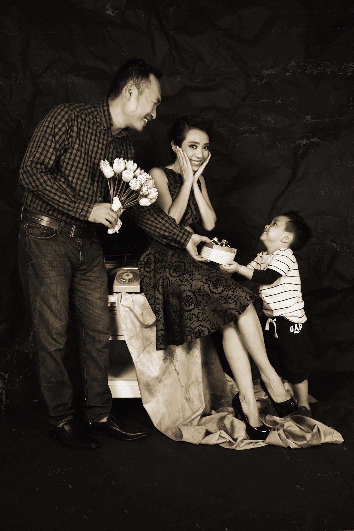 Diễn viên Tiến Luật cho biết, anh thực hiện bộ hình đen trắng vì muốn ghi lại khoảnh khắc hạnh phúc của gia đình.