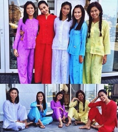 | Tăng Thanh Hà và các cô gái trong gia đình chồng diện áo bà ba trong ngày Tết để thể hiện một trong những truyền thông đáng quý của người miền Tây. |
