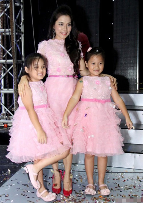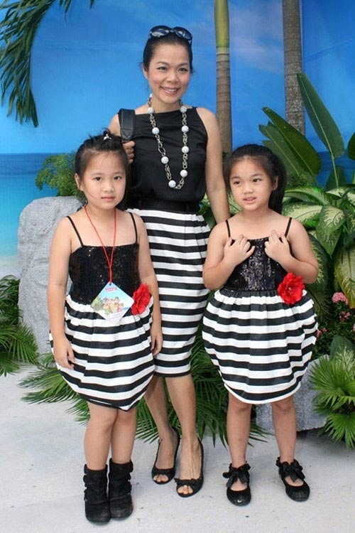 | Mỹ Lệ và 2 cô công chúa nhỏ thường xuyên diện đồng phục khi đến tham dự các sự kiện giải trí. |