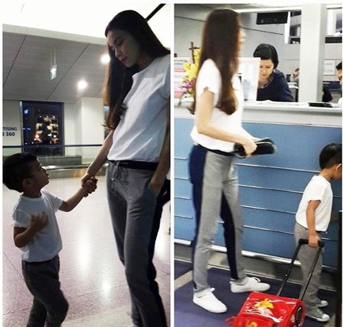 | Hình ảnh mặc đồ đôi của mẹ con Hồ Ngọc Hà khi đi chơi... |