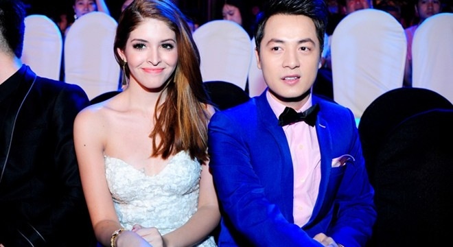 | Đến cuối năm 2013, cặp đôi mới có dịp hội ngộ trong sự kiện ra mắt phim. Dù đã cố tỏ ra tự nhiên nhưng gương mặt Tùng Tống vẫn rất gượng gạo. Trong khi đó, hot girl Hà Min tươi cười hớn hở khi gặp lại tình cũ. Ảnh: Hoàng Vũ. |