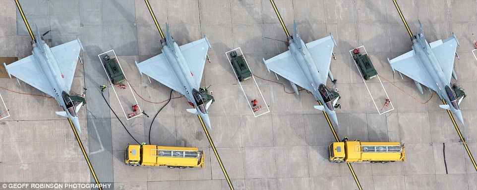 Dàn chiến đấu cơ Typhoon FGR4 đang nhận nhiên liệu tại căn cứ Lossiemouth, Scotland.