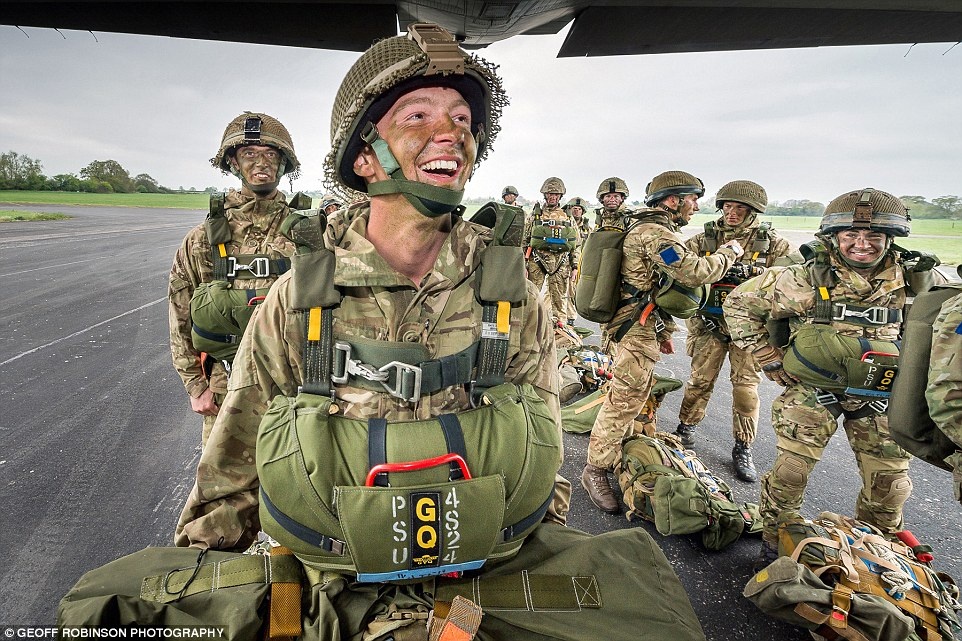 Nụ cười người lính Christopher Miller vào ngày cuối cùng trong khóa huấn luyện của phi đội 1 Air Mobility Wing tại quận Deptford, phía đông nam thủ đô London.